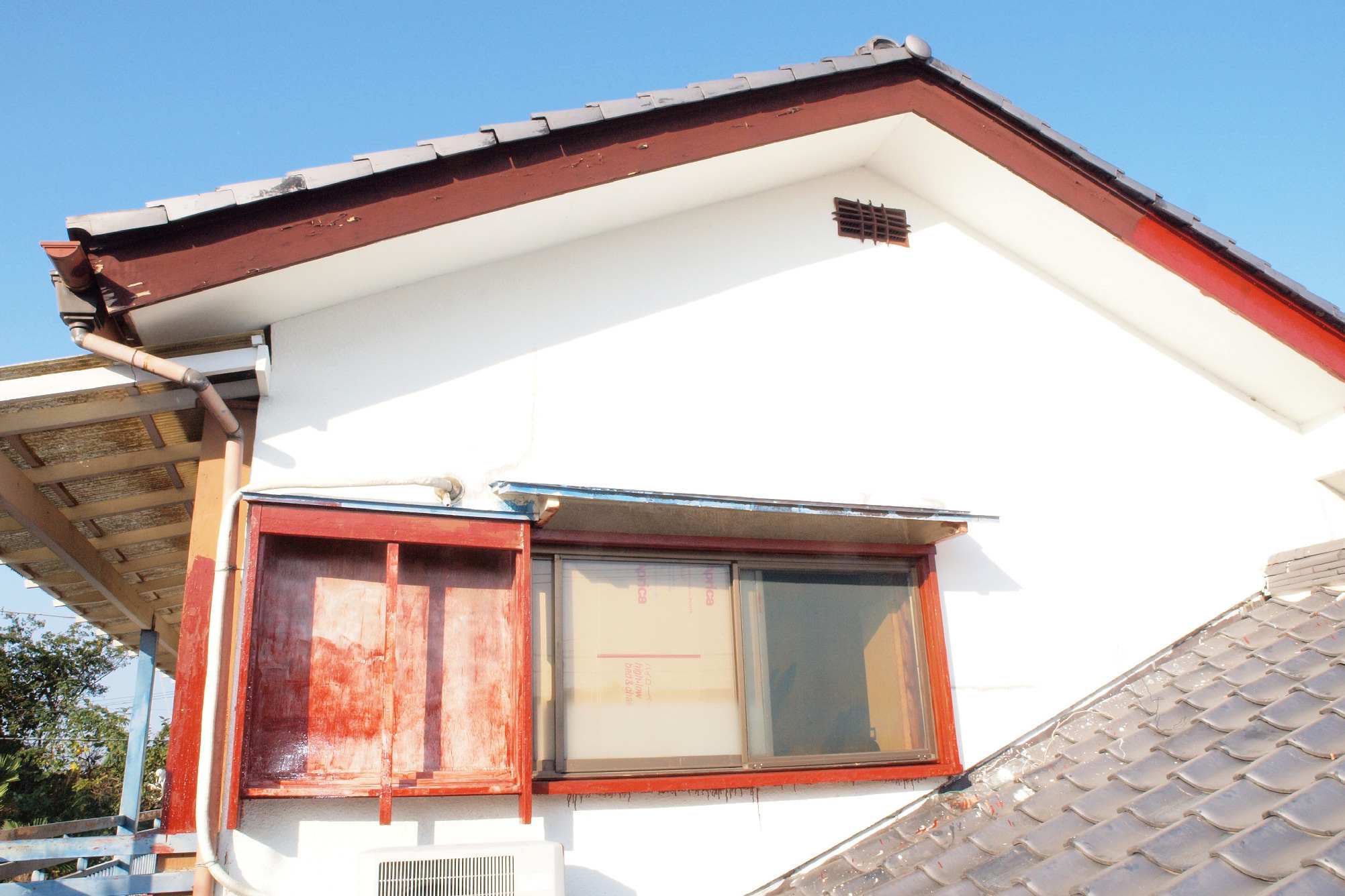 21. 平成25年修理中 2F東 破風板南側、1回目の塗装終了。