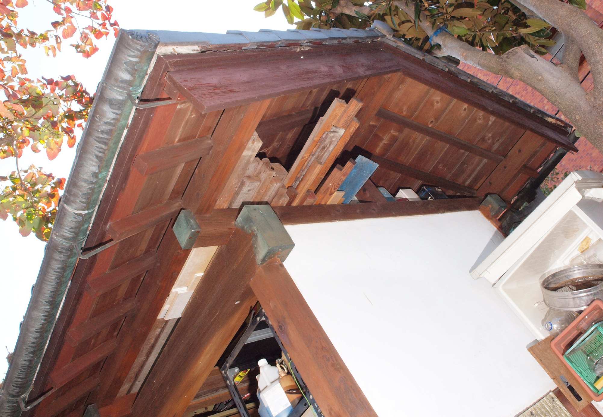 72. 平成29年塗装・修理中 北側軒天、東より。 樋を外し塗装中。