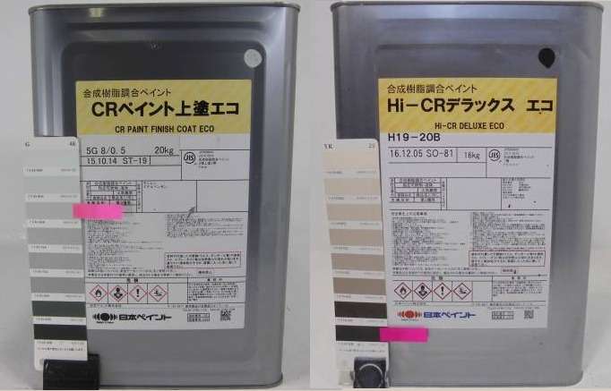 | D1. 平成29年使用塗料。 左=壁面サイデング、右=軒天等。 |