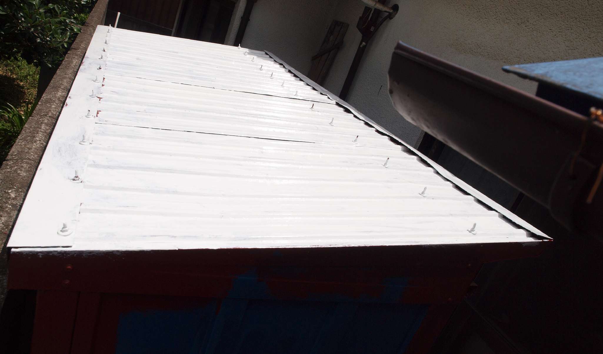 11. 修理中 大雪で屋根の波板前の部分が曲がってしまったので、修理後錆止め塗装終了。