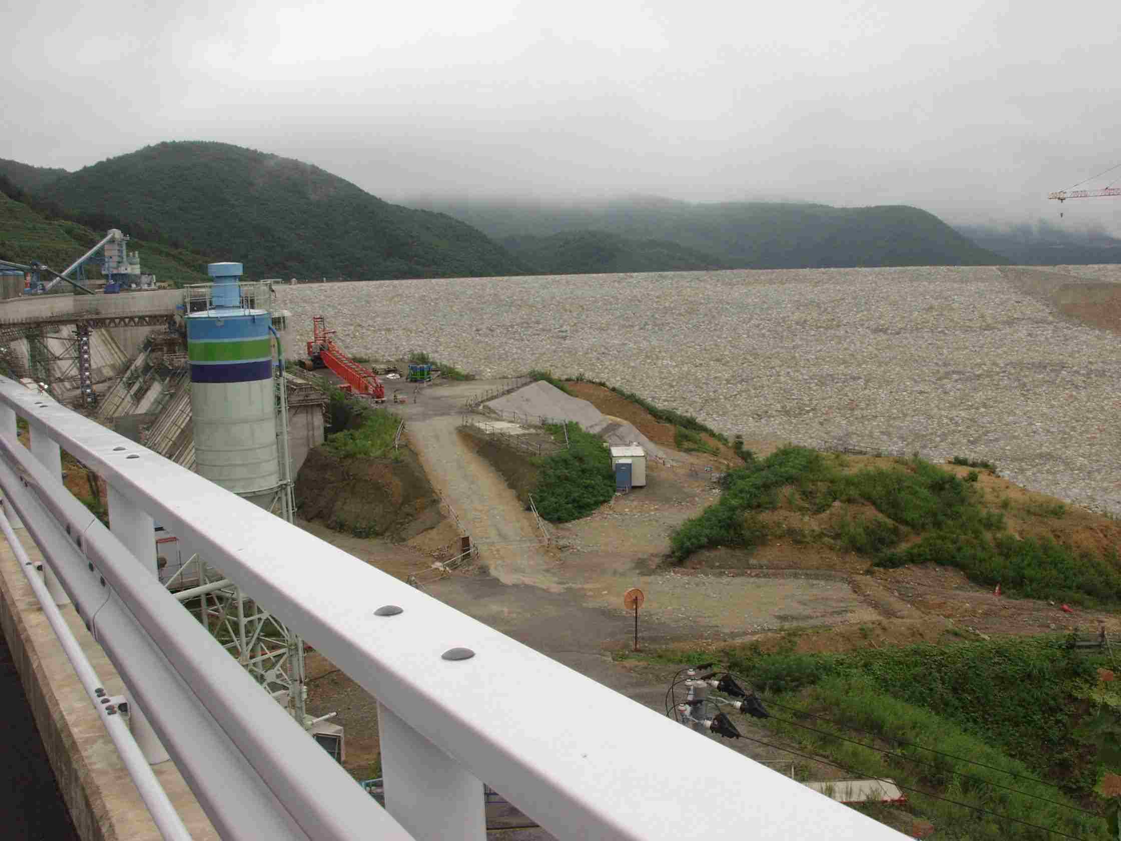 このダムはグラビティ(重力)ダム方式で、沢山の岩や土で川を堰き止める方式