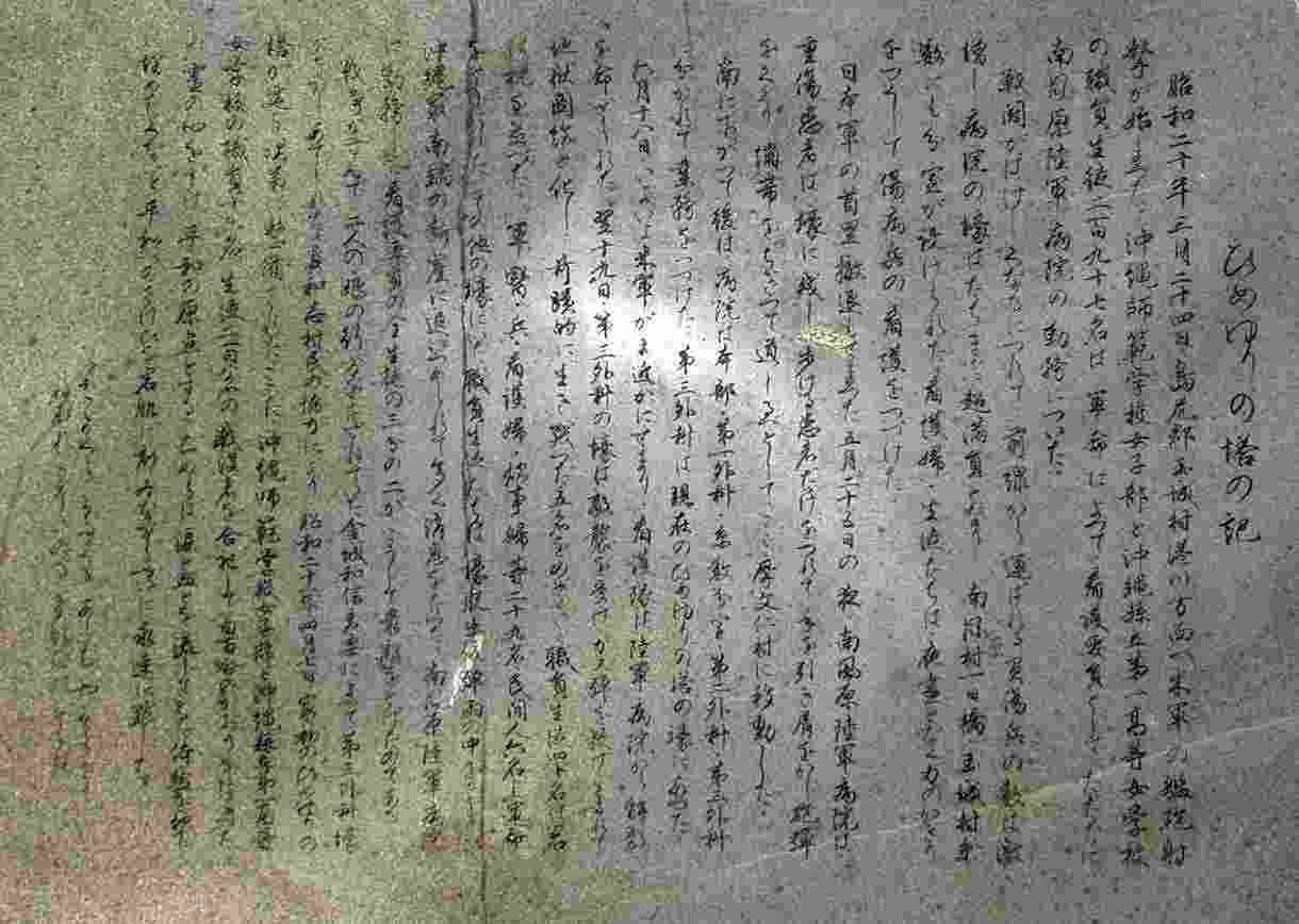 | 3.ひめゆり学徒隊のたどった運命が記述されている石碑 右の拡大表示すると読めます |