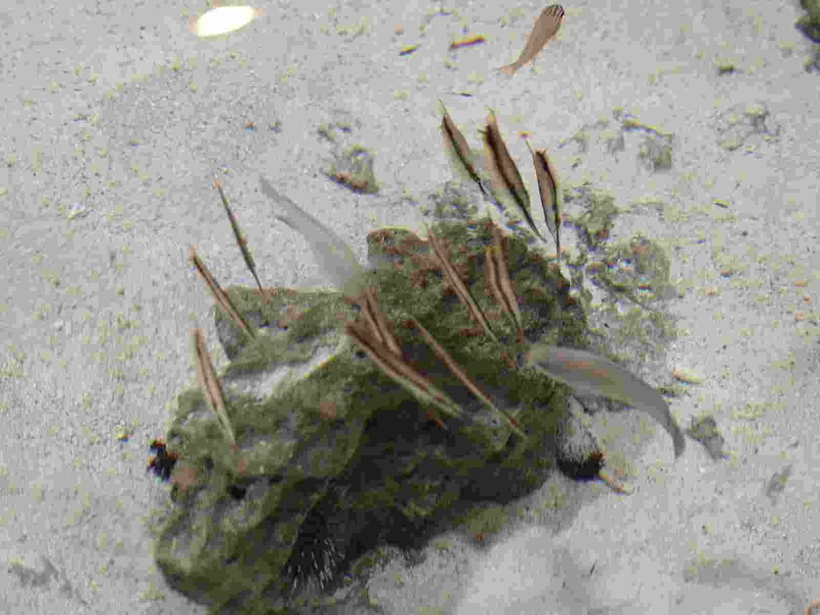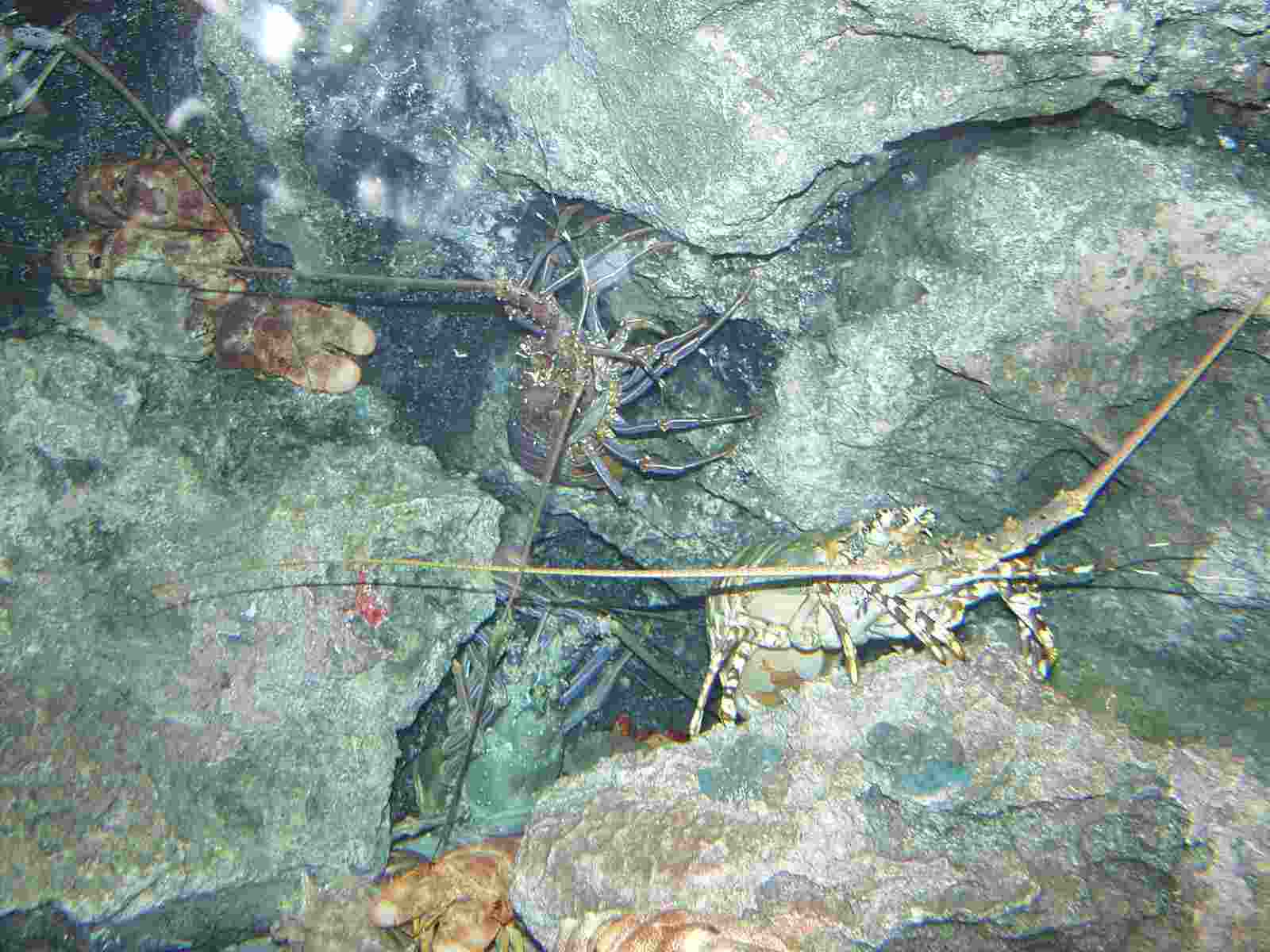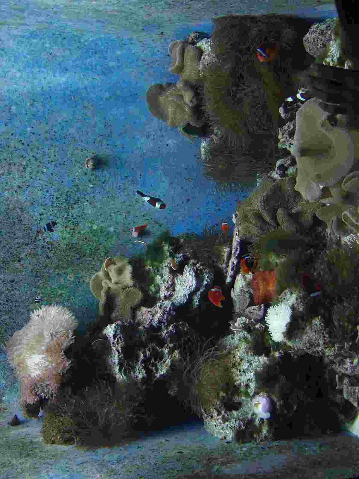| 4.ダイバーが水中カメラを持込、左のスクリーンに写し出す |