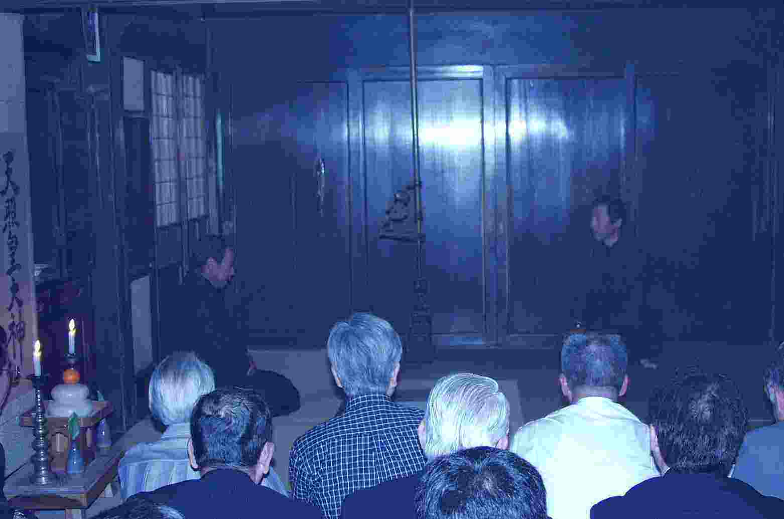 | 41.お土産の餅を貰う | 42.帰りのセレモニー | 43.年期の入ったお面 | ||