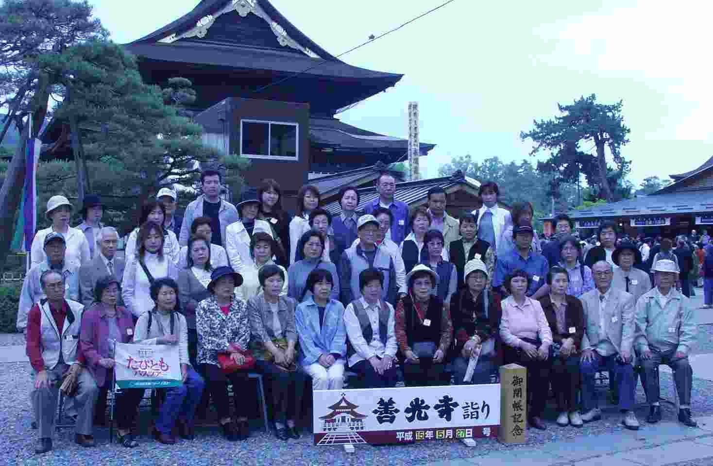 | 21.本堂より門を見る | 22.本堂前の回向柱 | 23.記念撮影 | ||