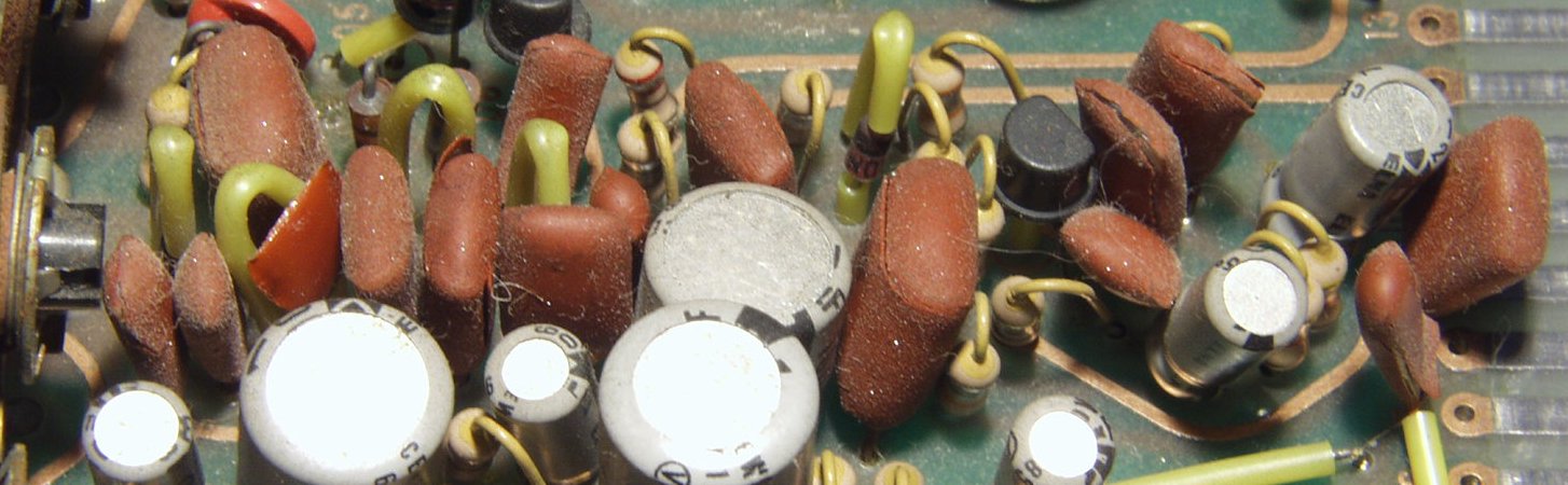 | F. 再修理 外観のみ綺麗にしても、内部から壊れます。 オーバーホールには、電解コンデンサー、フイルムコンデンサー、ソリッド抵抗の交換が必要 |