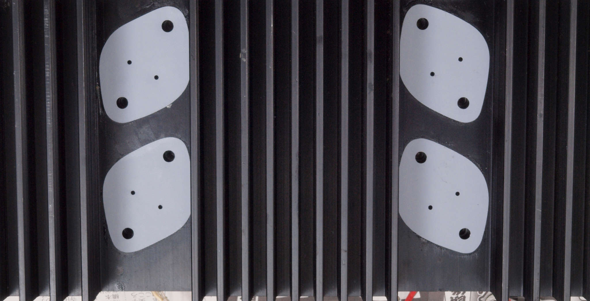 | C13. 修理前 終段TR(トランジスター)絶縁マイカー。 何回もTR(トランジスター)を抜き差しし、穴が拡大している。 | ||||||||||||||||||||||||||||||||||||||||||||||||||||||||||||||||||||||||||||||||||||||||||||||||||||||