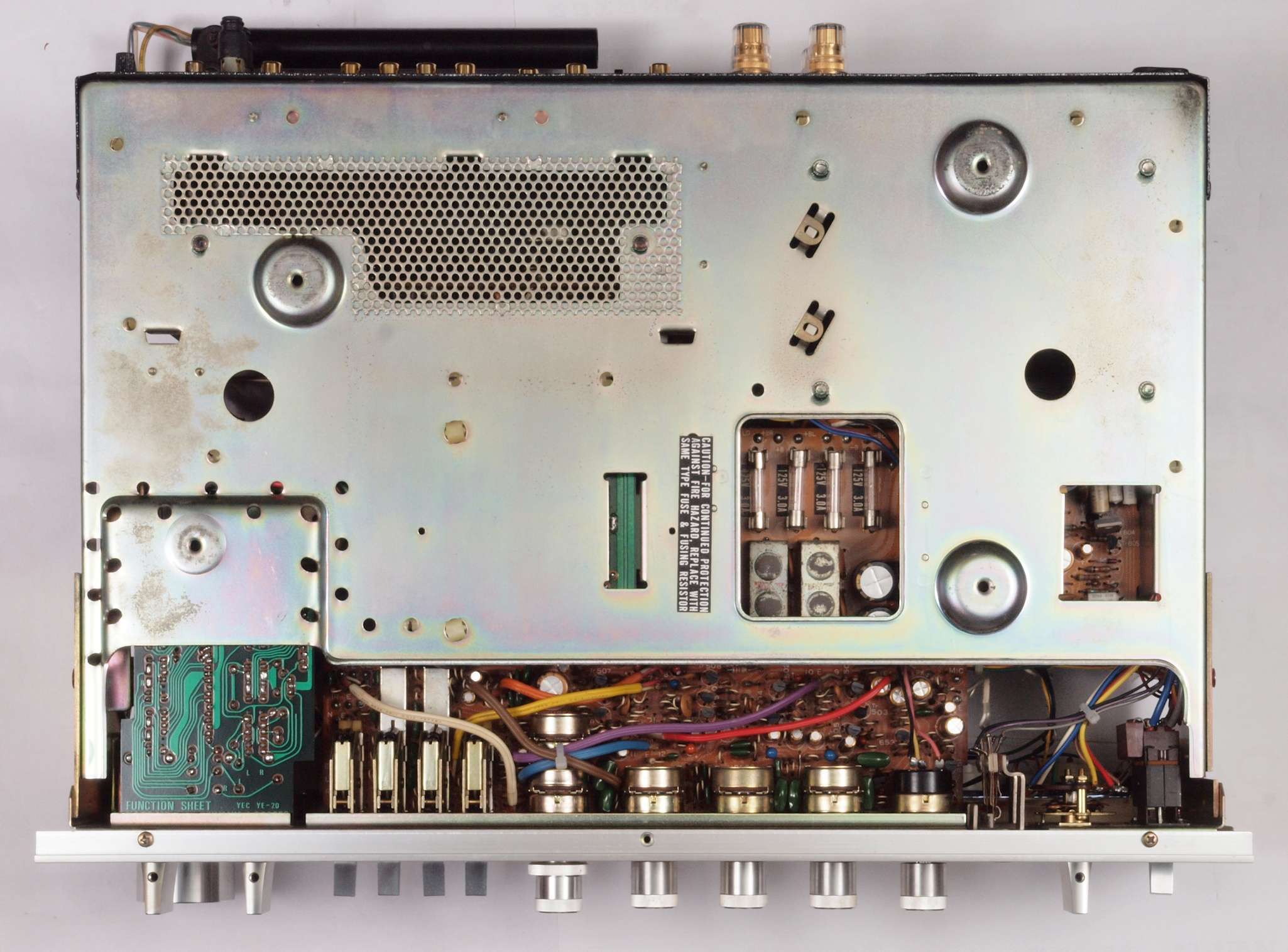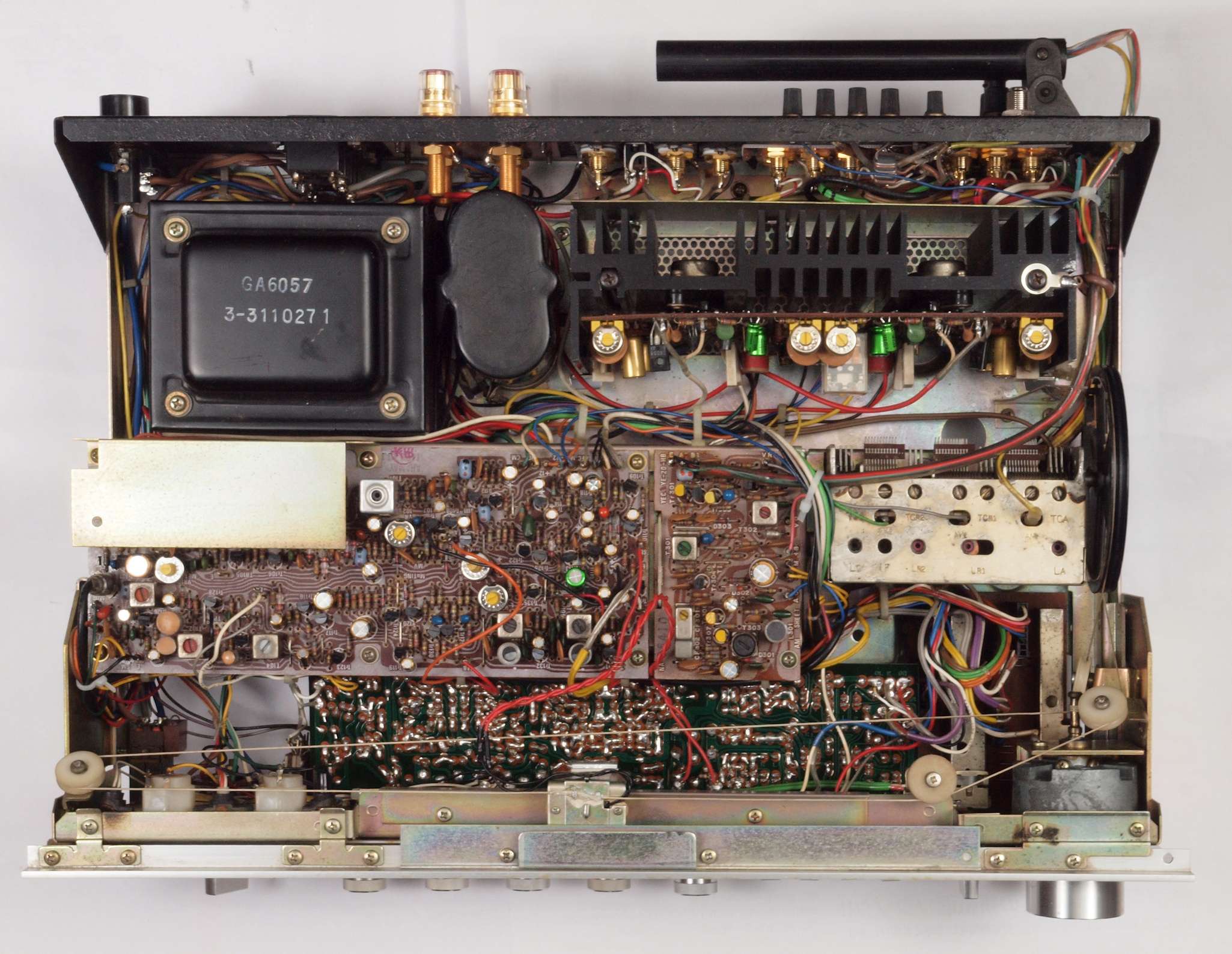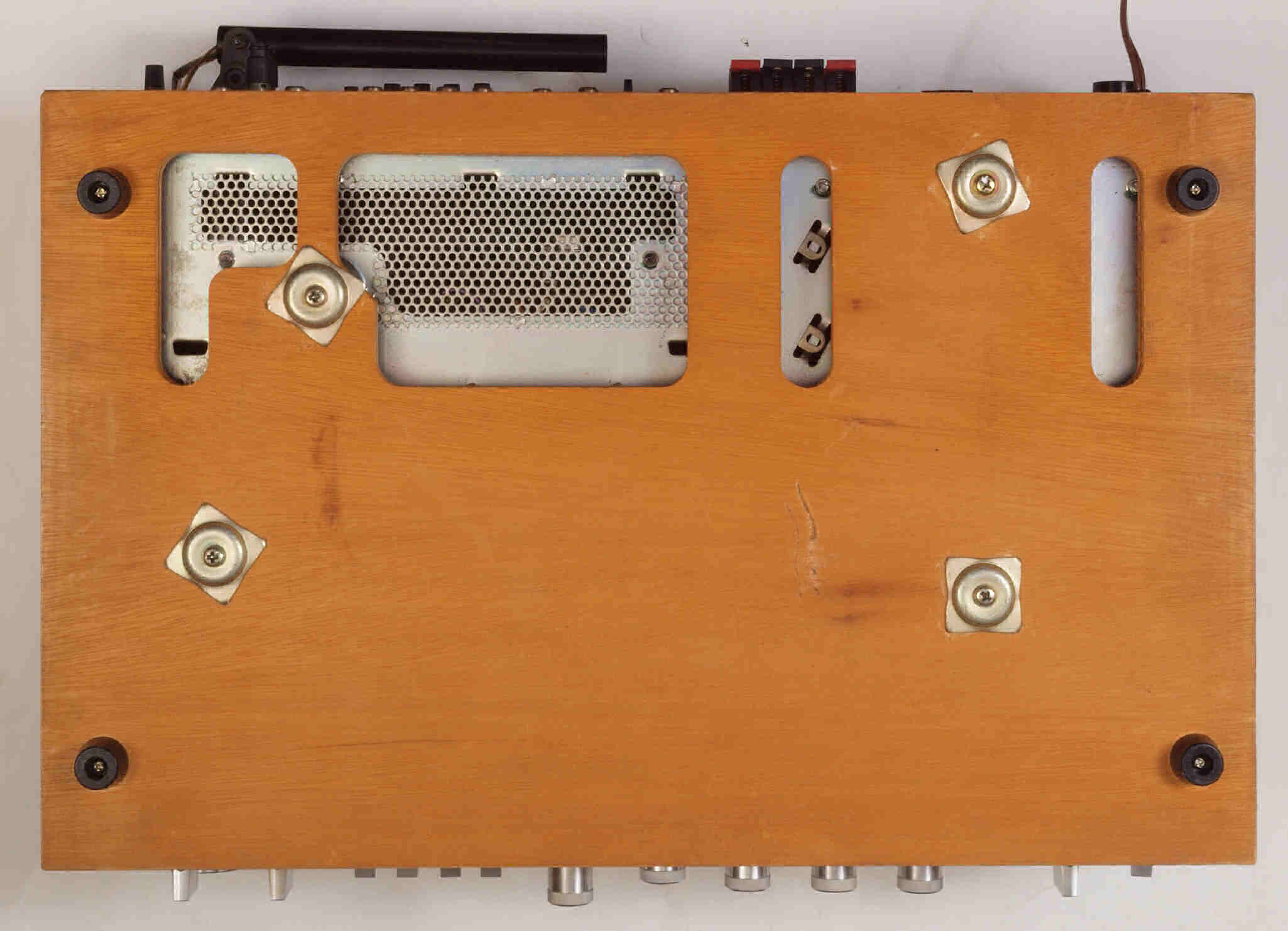 | A16. 点検中 木ケースを取り、上から見る。メインVRツマミとバランスVRツマミが入れ違っている。 | ||||||||||||||||||||||||||||||||||||||||||||||||||||||||||||||||||||||||||||||||||||||||||||||||||||||