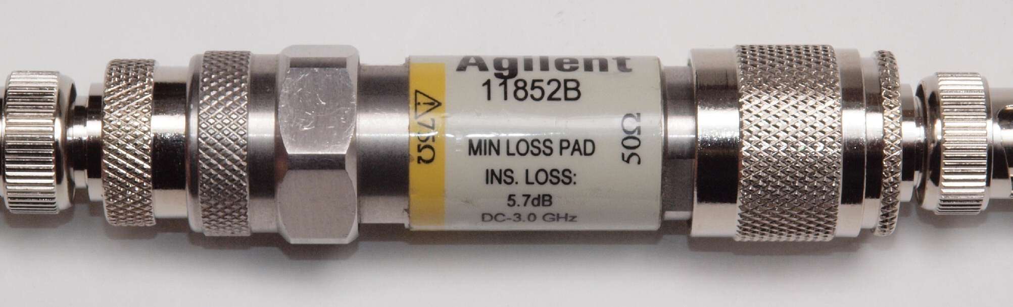 | F01. 75/50Ω変換アダプター。 無線機器のプロ器は、インピーダンスが50Ω。 民生機器は75Ω。 これを挿入しているので、「LEADER 3216P FMステレオ信号発信器」の信号出力は−5.7dB低くなる。 |