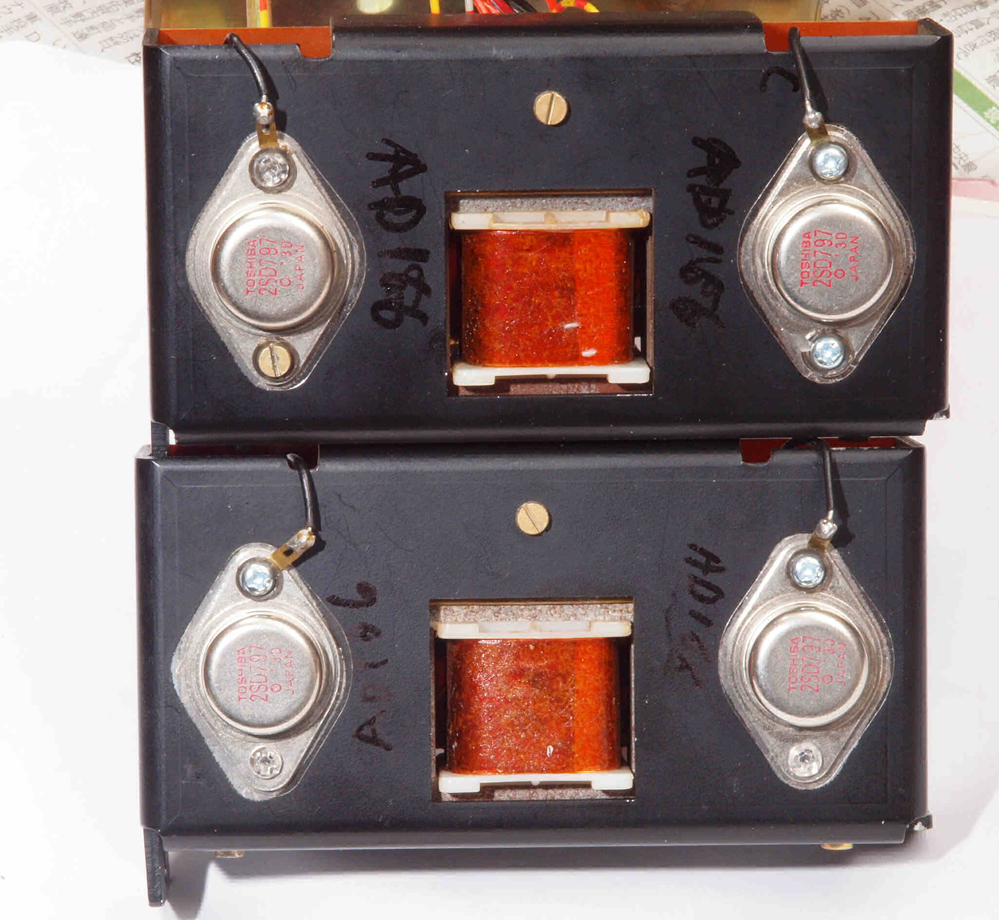 A41. 点検中 終段TR(トランジスター)。貴重なジーメンス−ハルスケ(Siemens & Halske AG)製のゲルマ トランジスターが日本製のシリコン トランジスターに交換されている!!