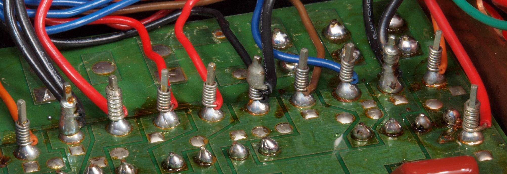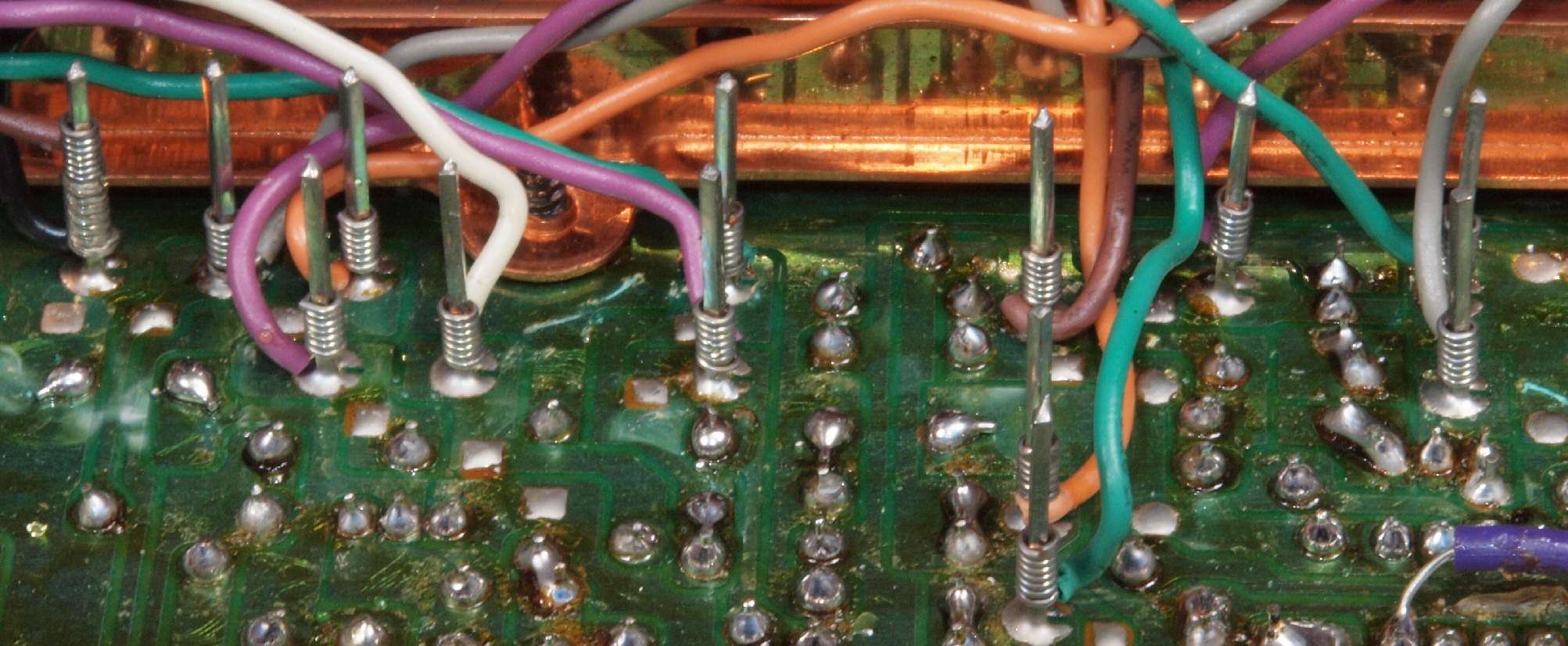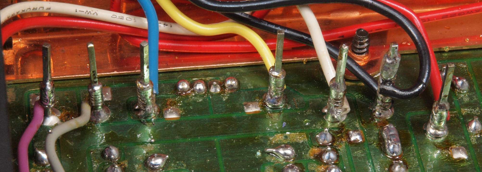 | C53. 修理(半田補正)後 ツマミ感知基板裏。 半田を全部やり直す。 | ||||||||||||||||||||||||||||||||||||||||||||