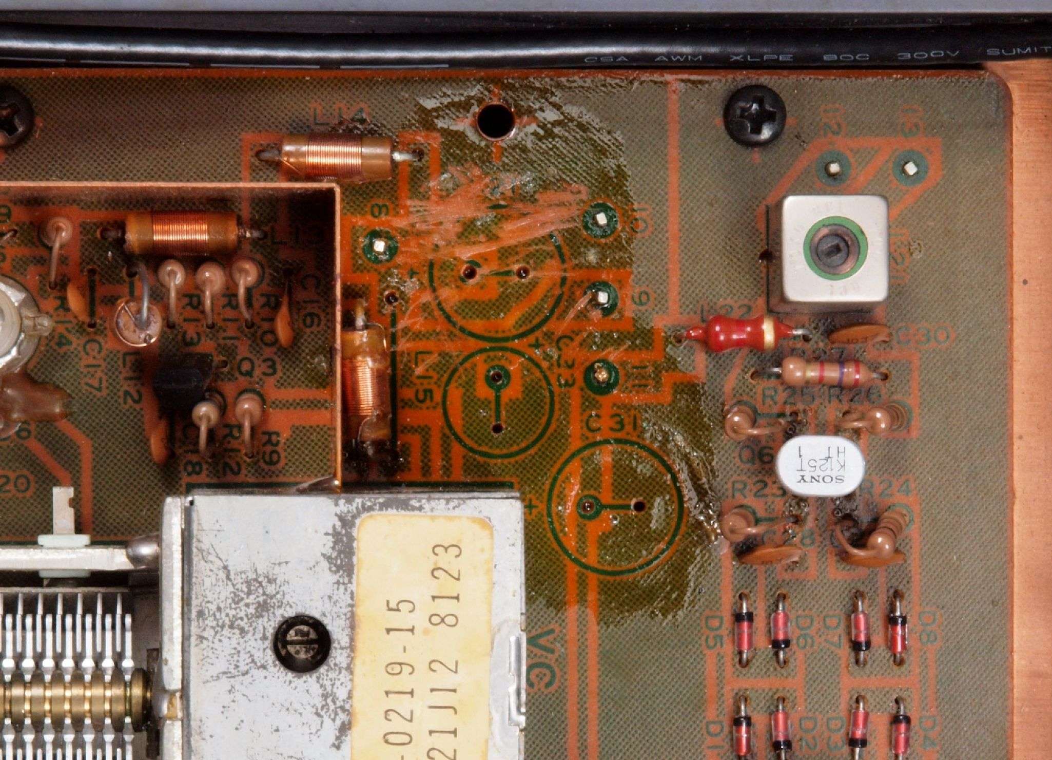 | C312. 修理中 フロントエンド基板、電解コンデンサーを固定した接着材。 | ||||||||||||||||||||||||||||||||||||||||||||