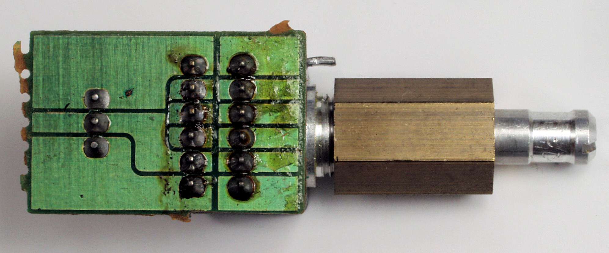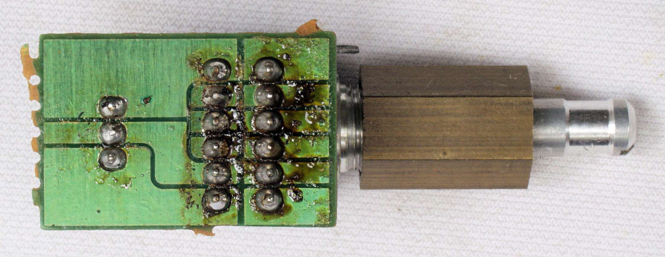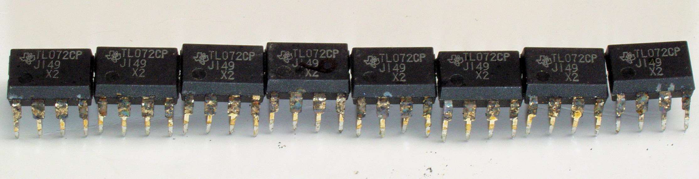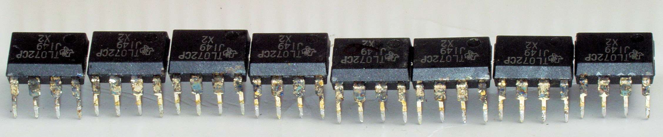 CI4. 交換部品、交換した足の腐食したOP-AMP、反対側から見る。