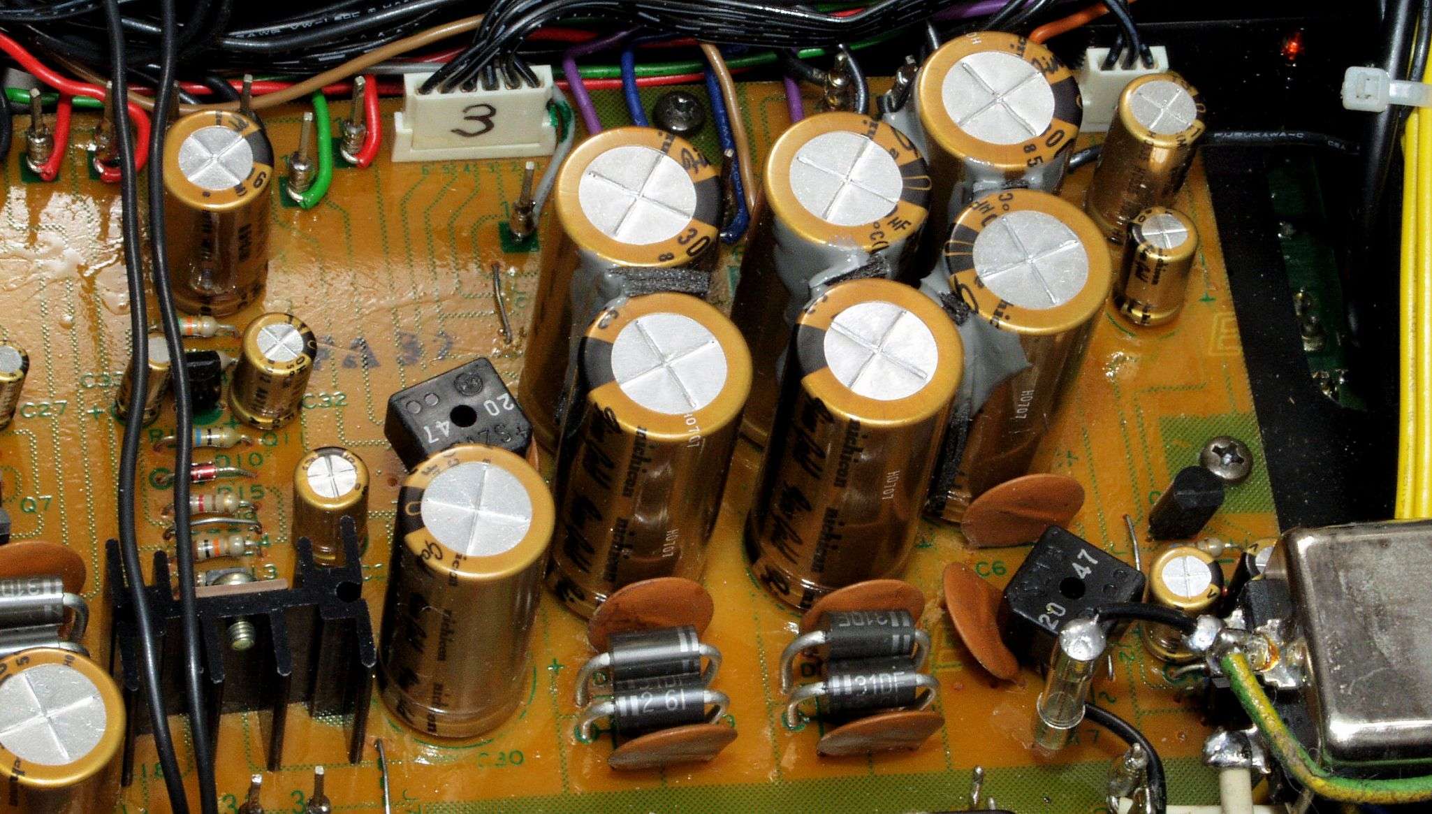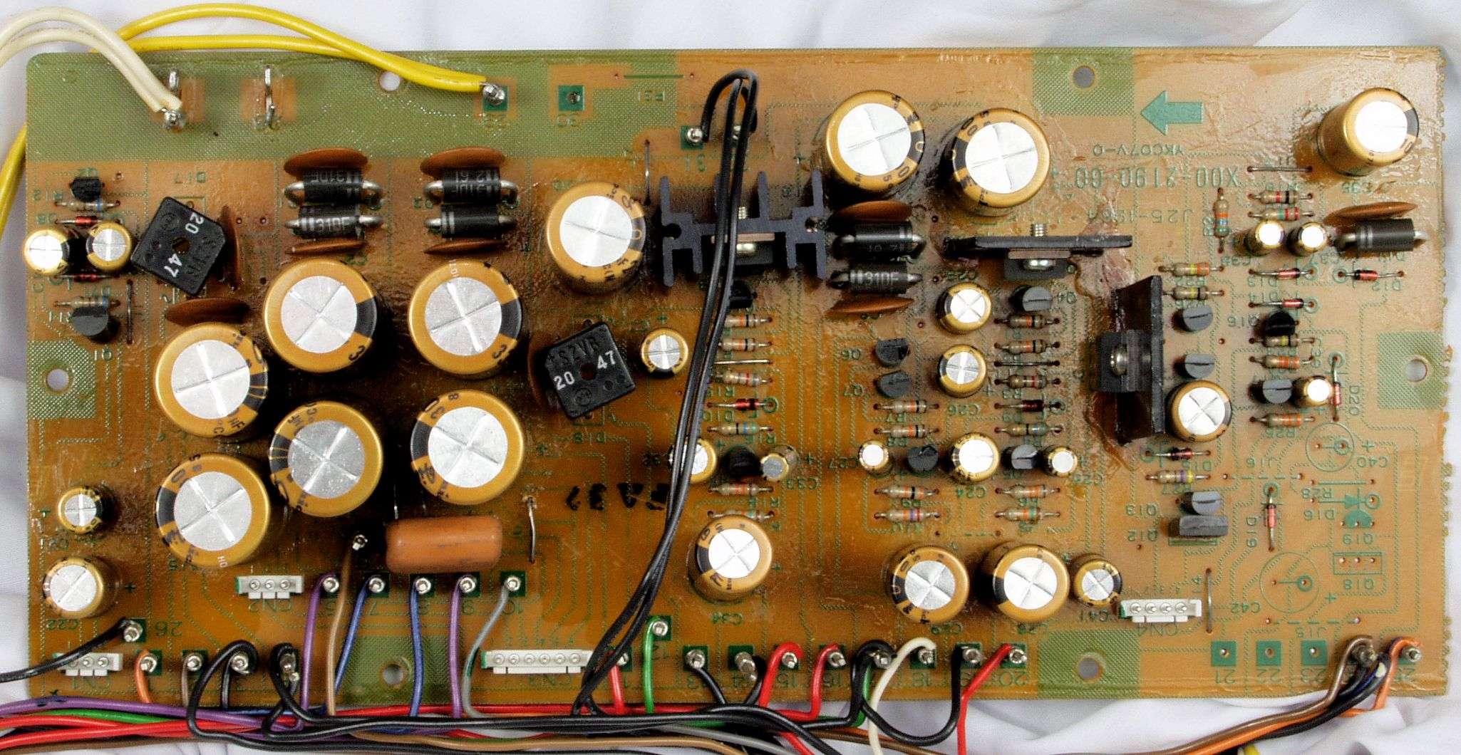 C12. 修理後 電源基板  整流ダイオード7個、整流ダイオードブリッジ2個、電解コンデンサー30個交換
