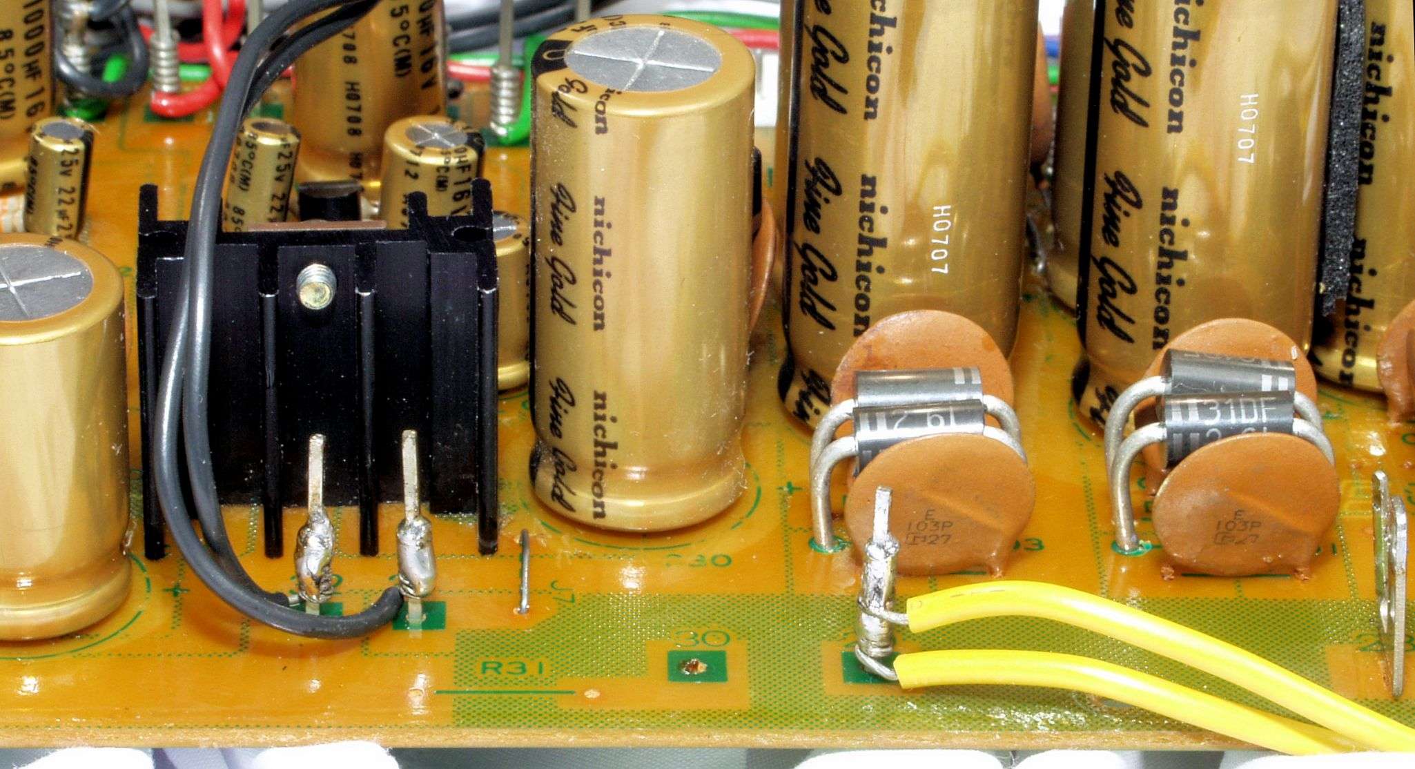 C32. 修理後 RF−MIX基板 電解コンデンサー7個交換