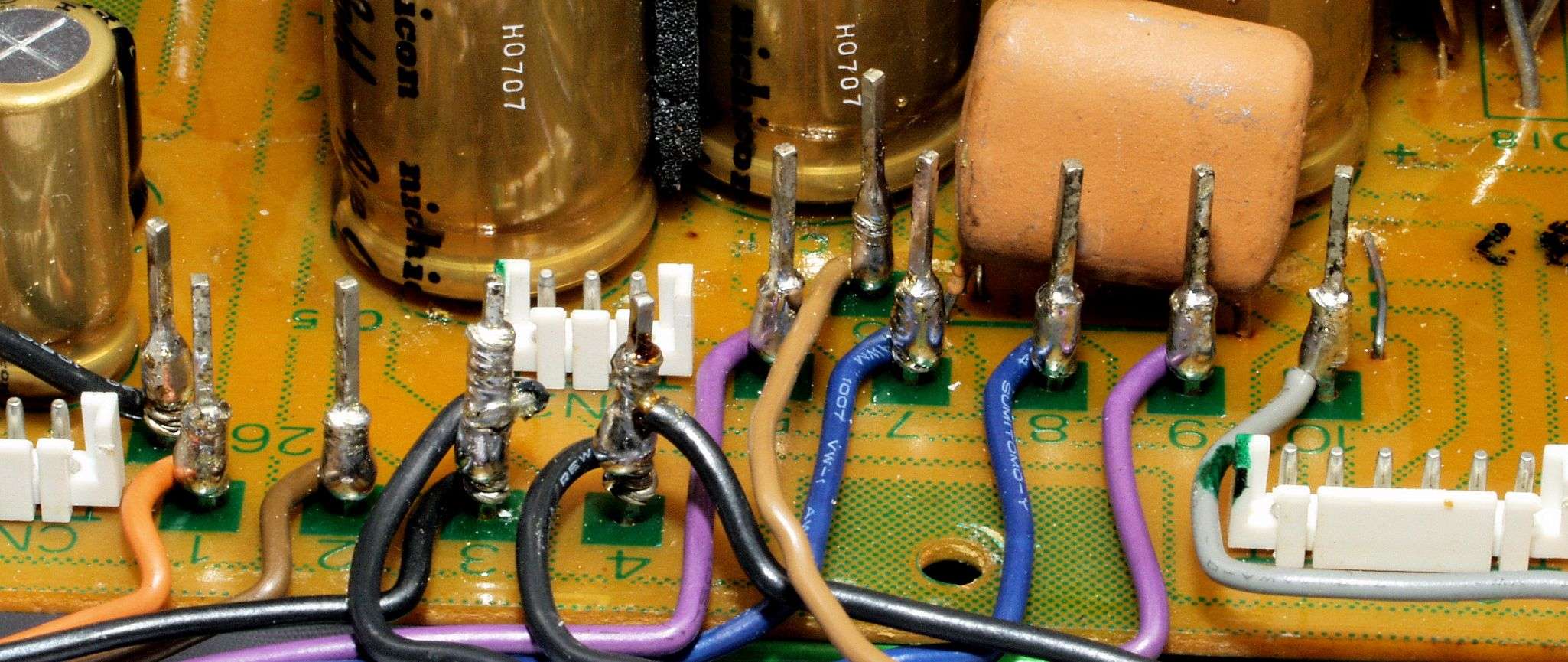 C1A2. 修理中 電源基板裏、ラッピング4、半田を流し込む。