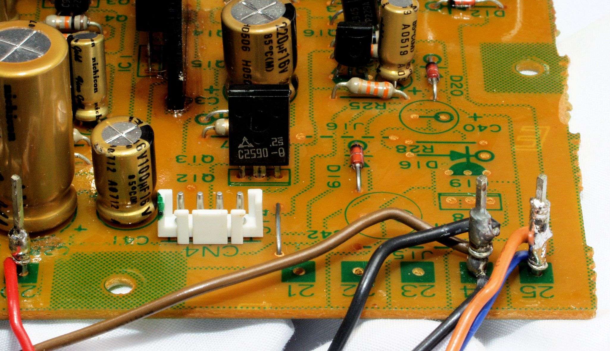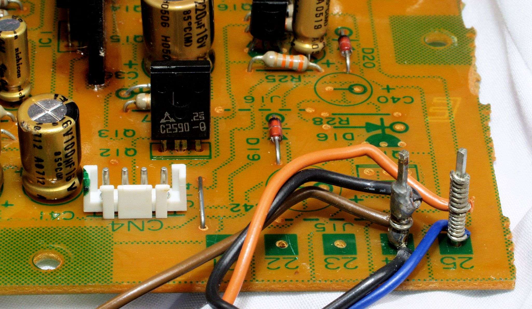 C19. 修理前 電源基板裏、ラッピング3。