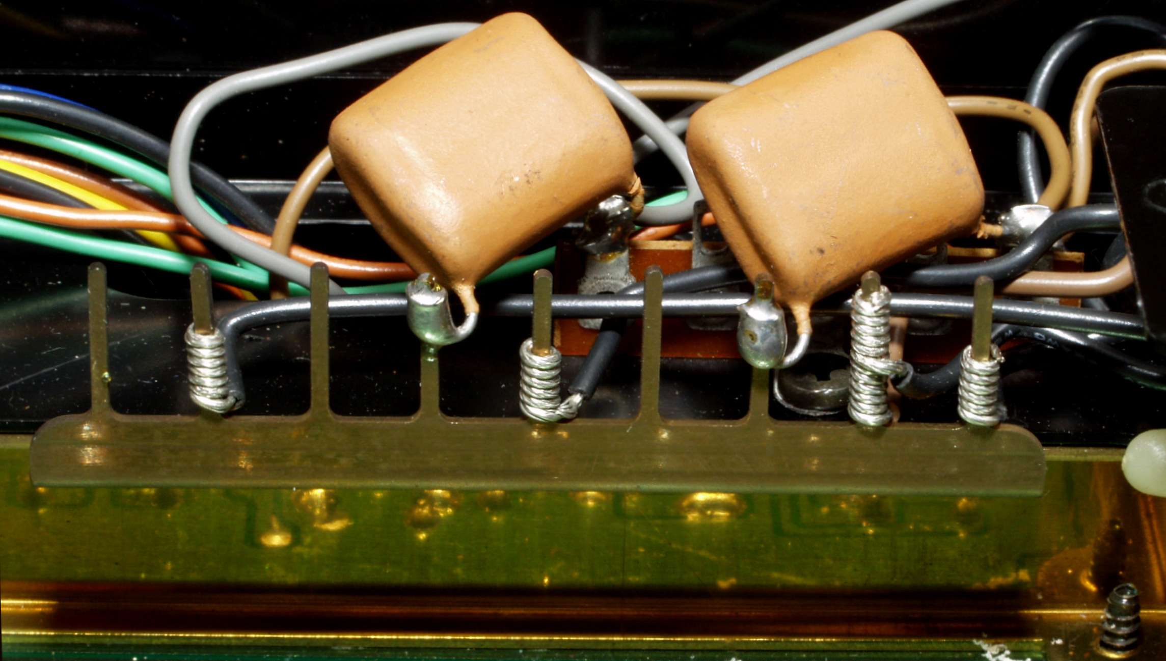 C427. 修理中C552. 修理中 MPX基板裏、ラッピング端子を補強する、屑錫メッキ線で絡げ、補強する。基板裏、半田不良ケ所2。