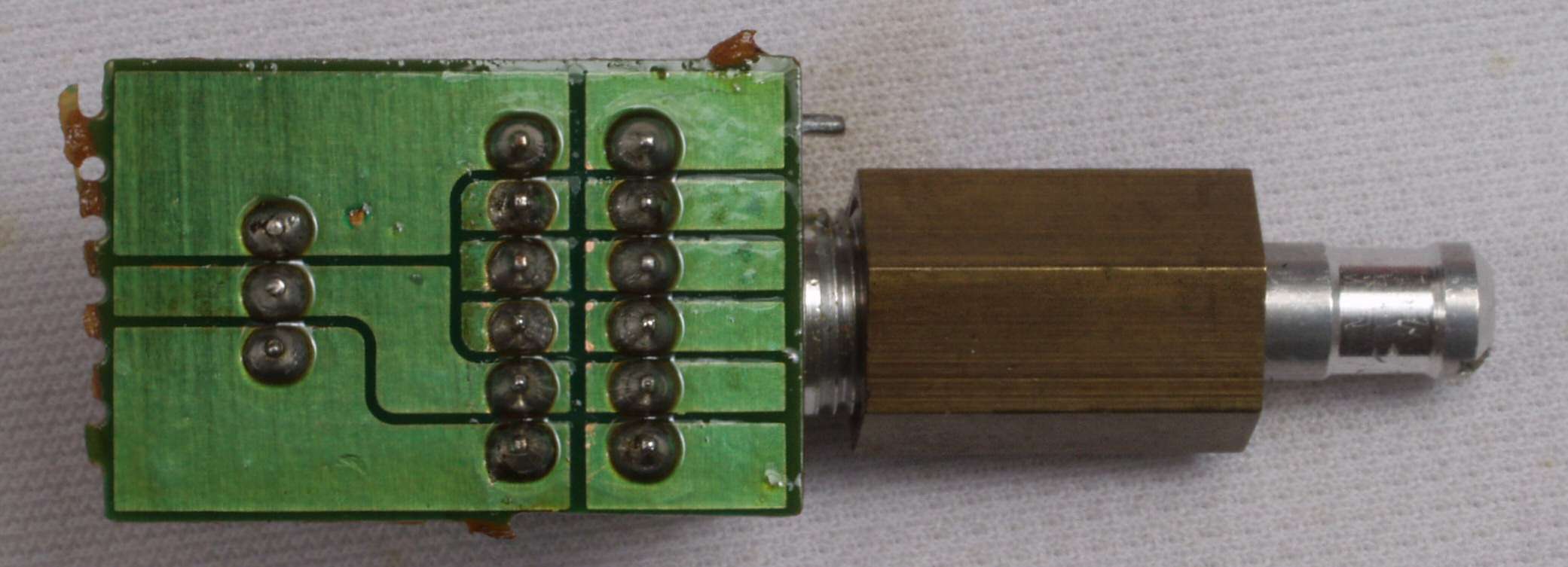 C35. 完成RF−MIX基板裏。余分なフラックスを落として、コート液を塗る。