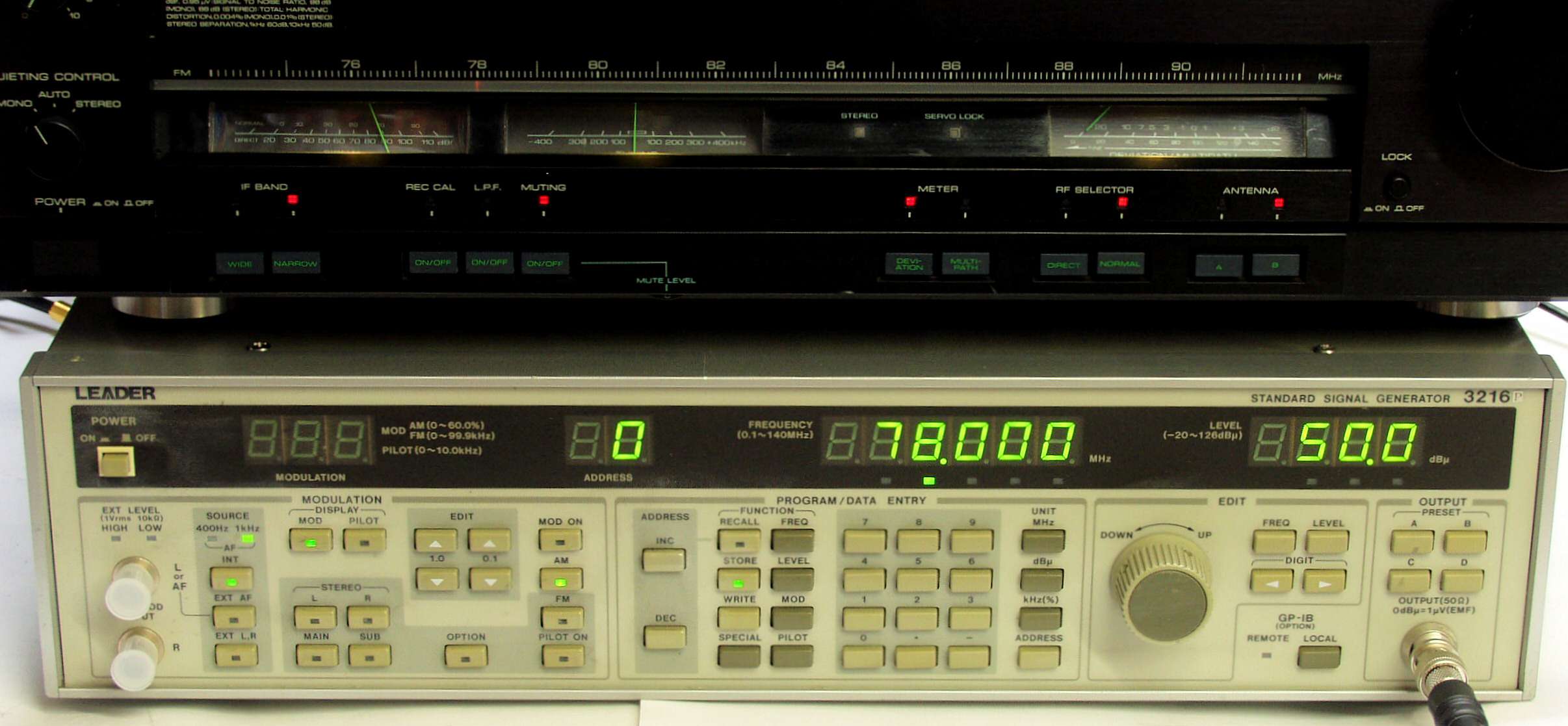 FMステレオ信号発信器より 85MHZで 1KHZの 85dBで出す。