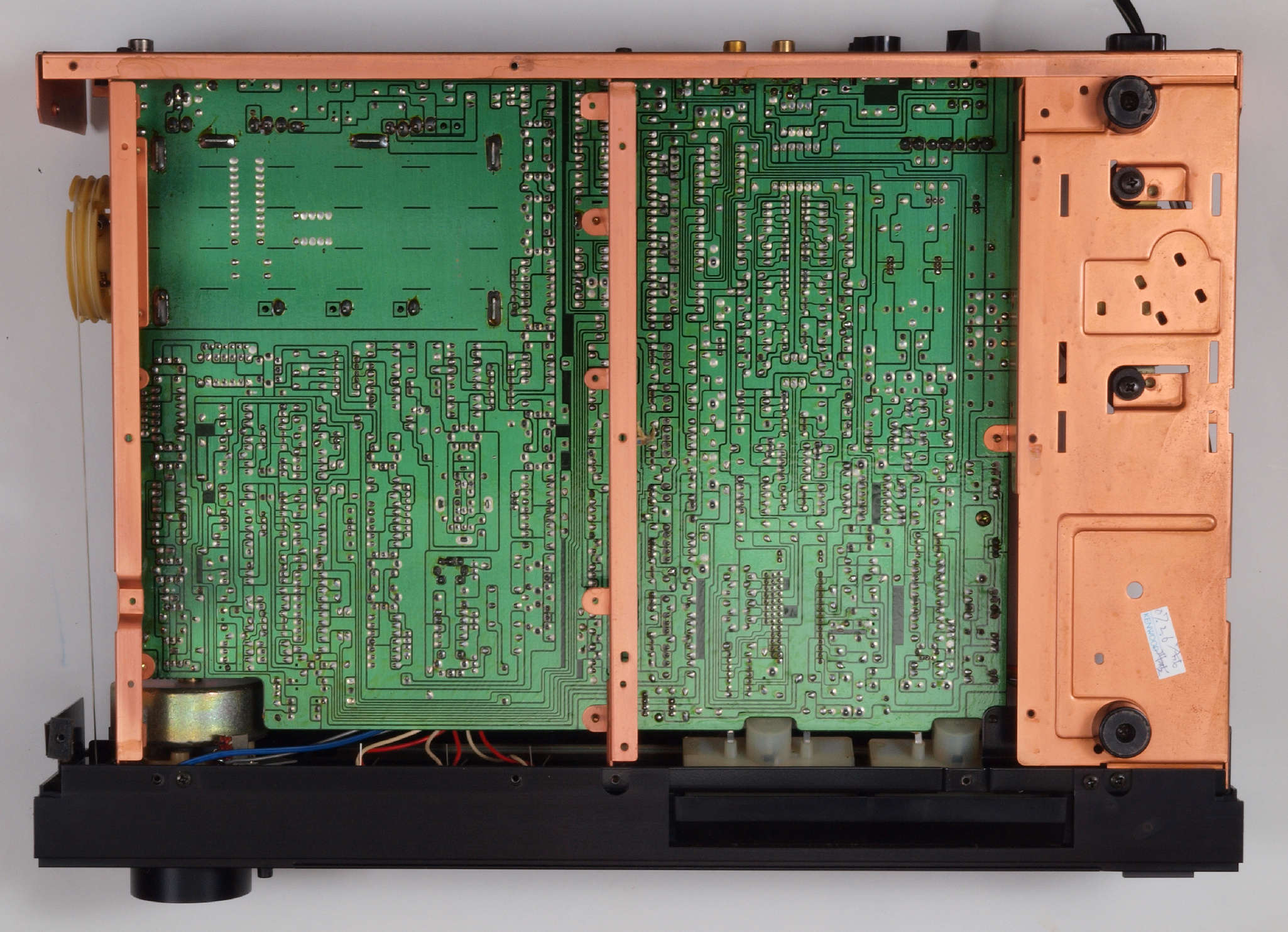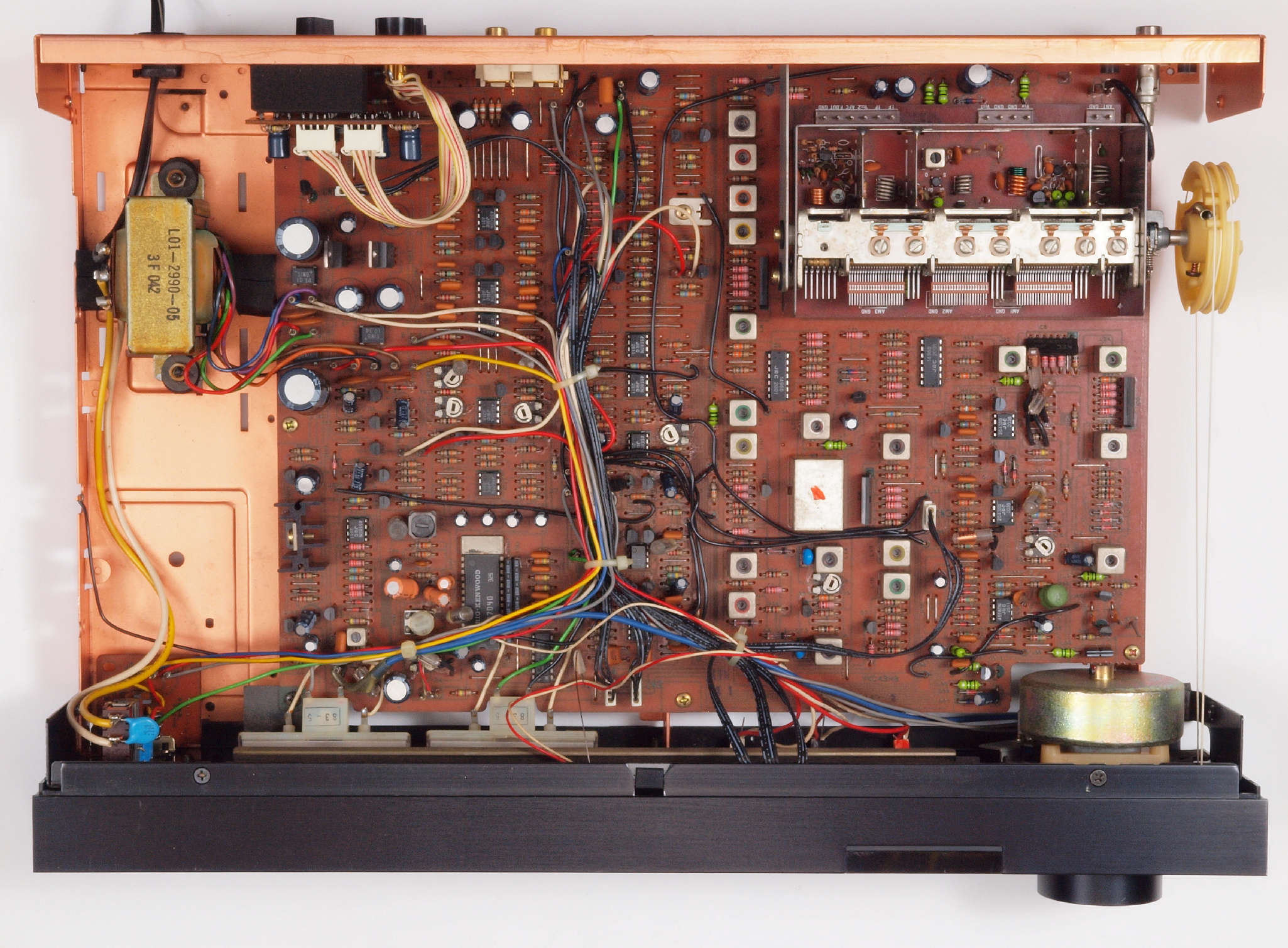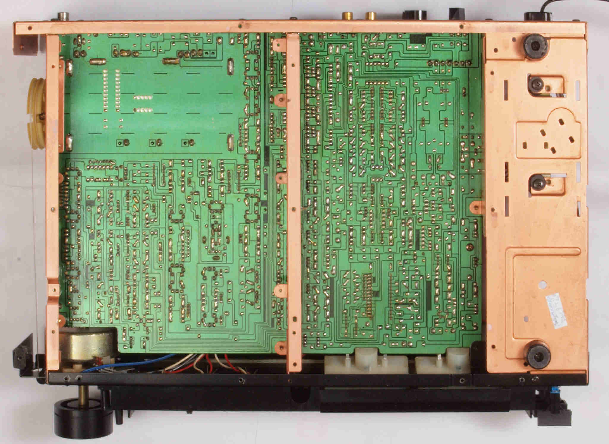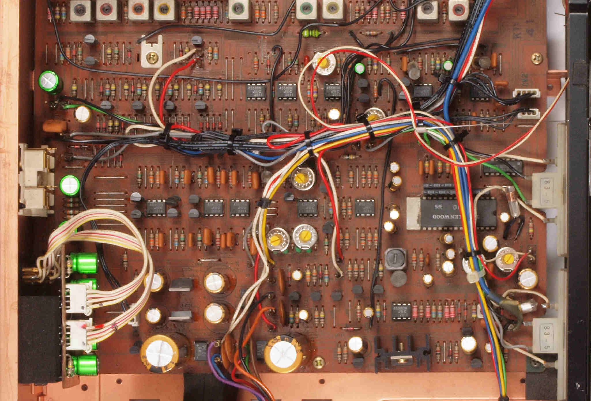| C32. 修理後 PLL−マルチプレックス−AF−電源基板。 半固定VR7個、OP-AMP4個、電解コンデンサー25個交換。 | ||||||||||||||||||||||||||||||||||||||||||||||||||