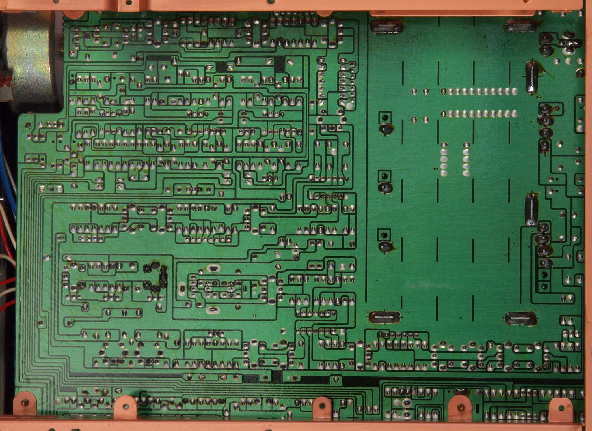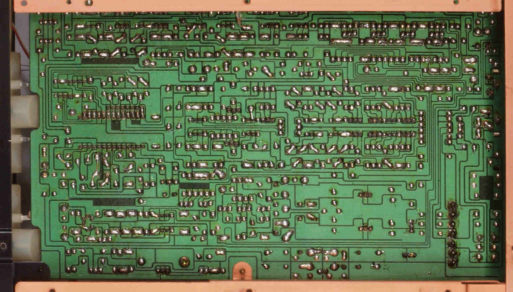 | C34. 修理(半田補正)後 PLL−マルチプレックス−AF−電源基板裏。 半田を全部やり直す。 | ||||||||||||||||||||||||||||||||||||||||||||||||||