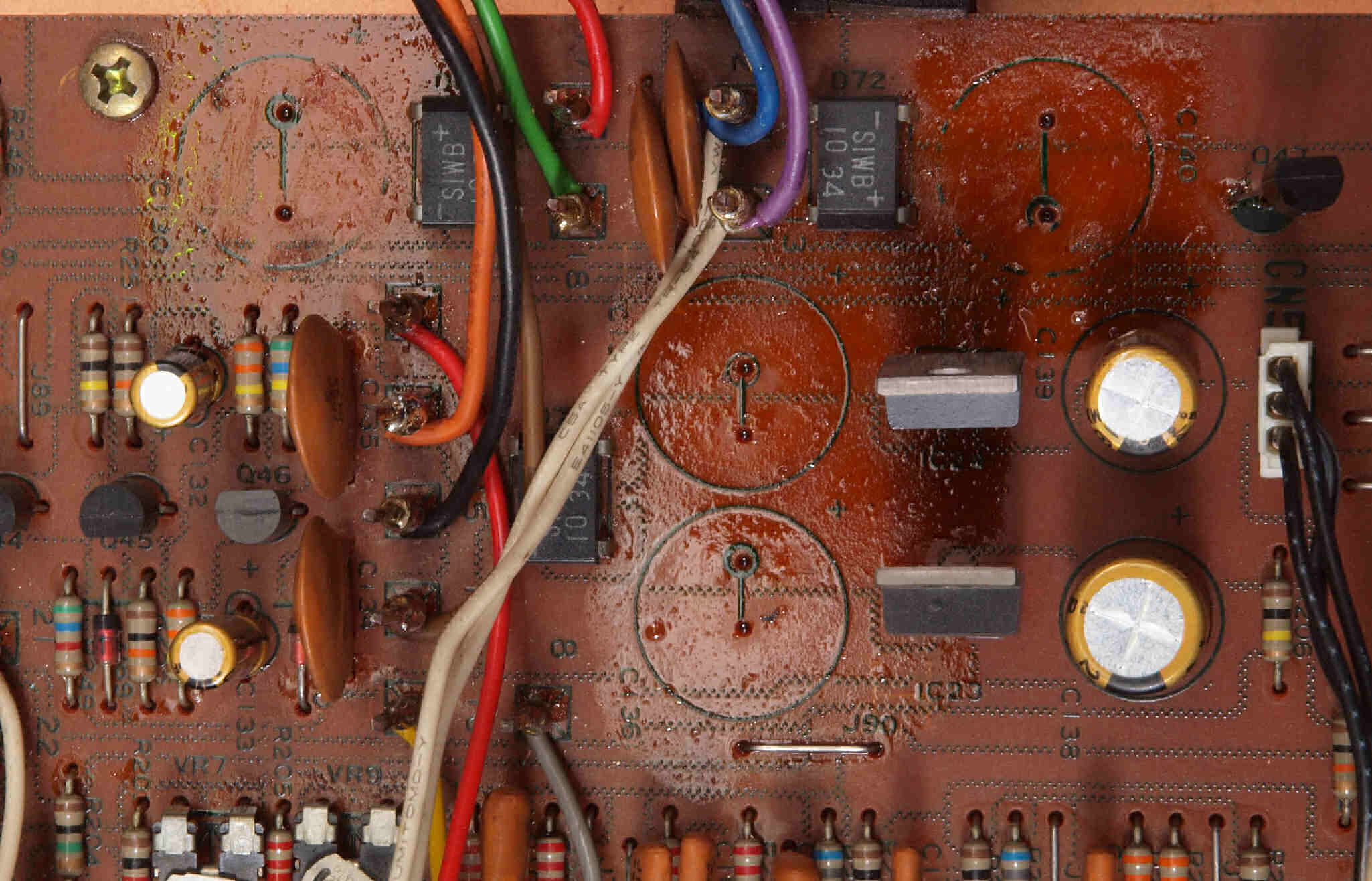 | C312. 修理中 PLL−マルチプレックス−AF−電源基板。 電解コンデンサー固定するトルエン溶媒の接着剤。 | ||||||||||||||||||||||||||||||||||||||||||||||||||