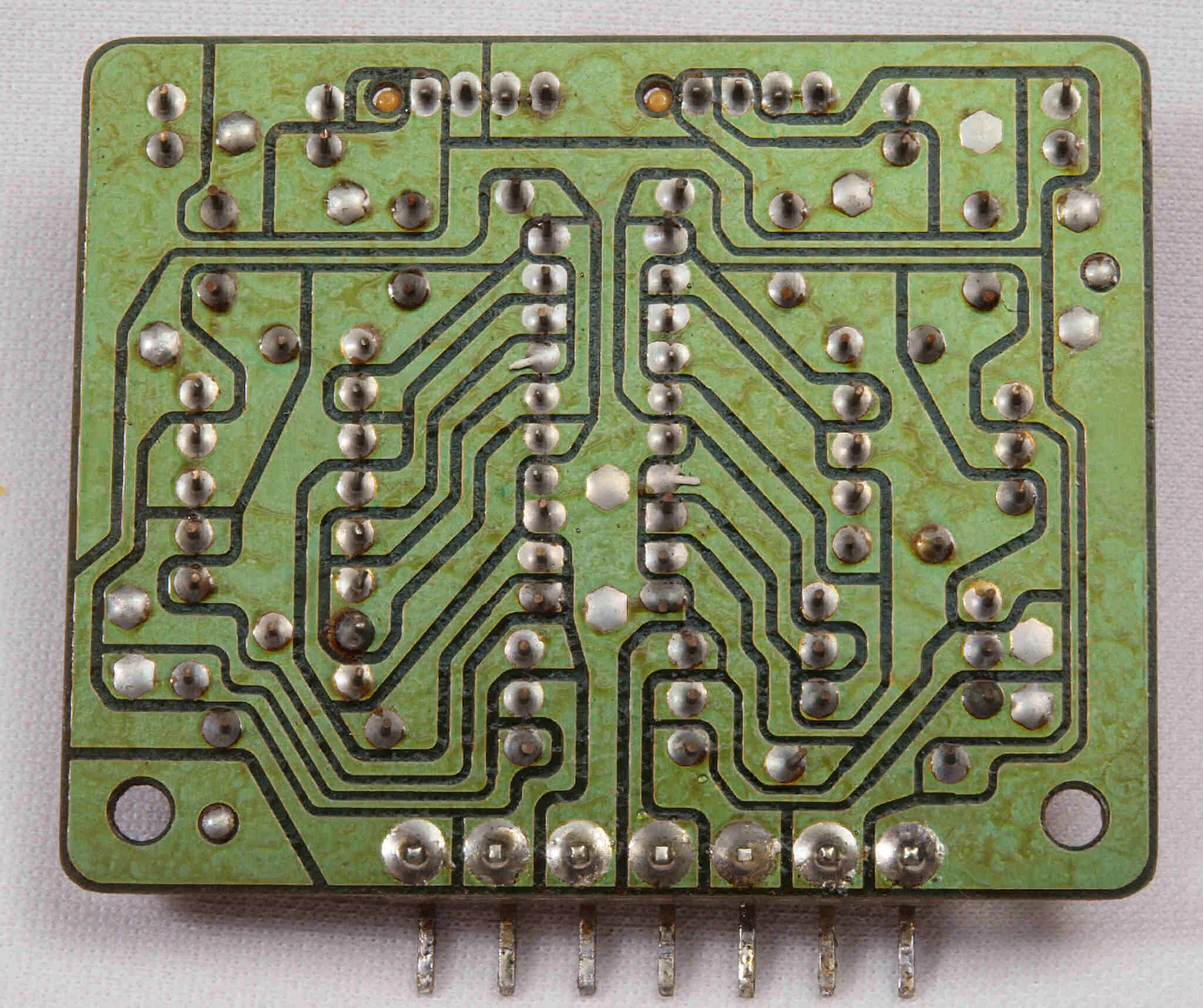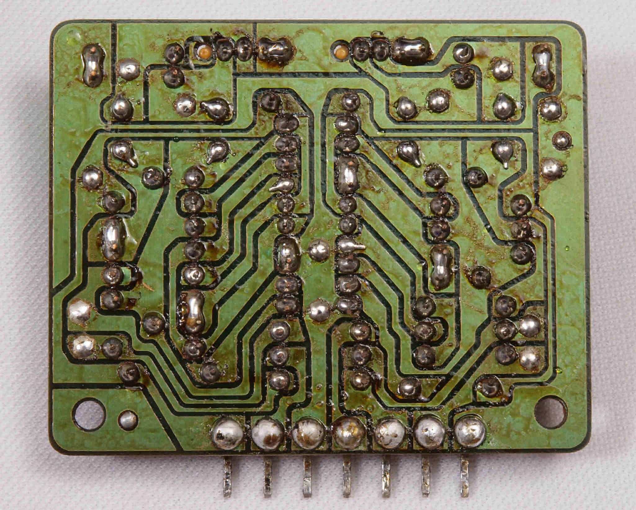 | C65. 完成ミューテングレベルVR・LED表示基板裏。余分なフラックスを落として、コート液を塗る。 | ||||||||||||||||||||||||||||||||||||||||||||||||||
