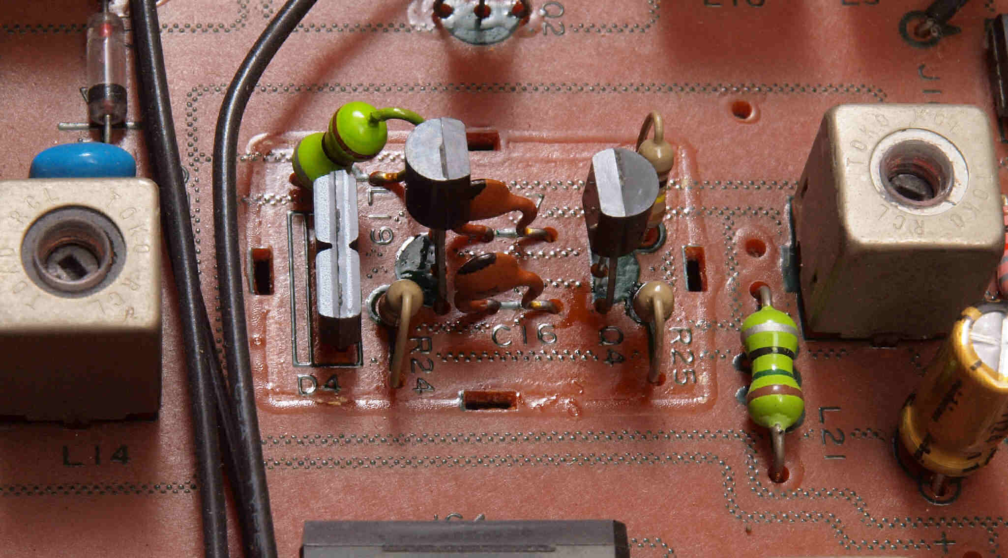 | C313. 修理後 PLL−マルチプレックス−AF−電源基板。 トルエン溶媒の接着剤を取り去り、コートを塗布後。 | ||||||||||||||||||||||||||||||||||||||||||||||||||