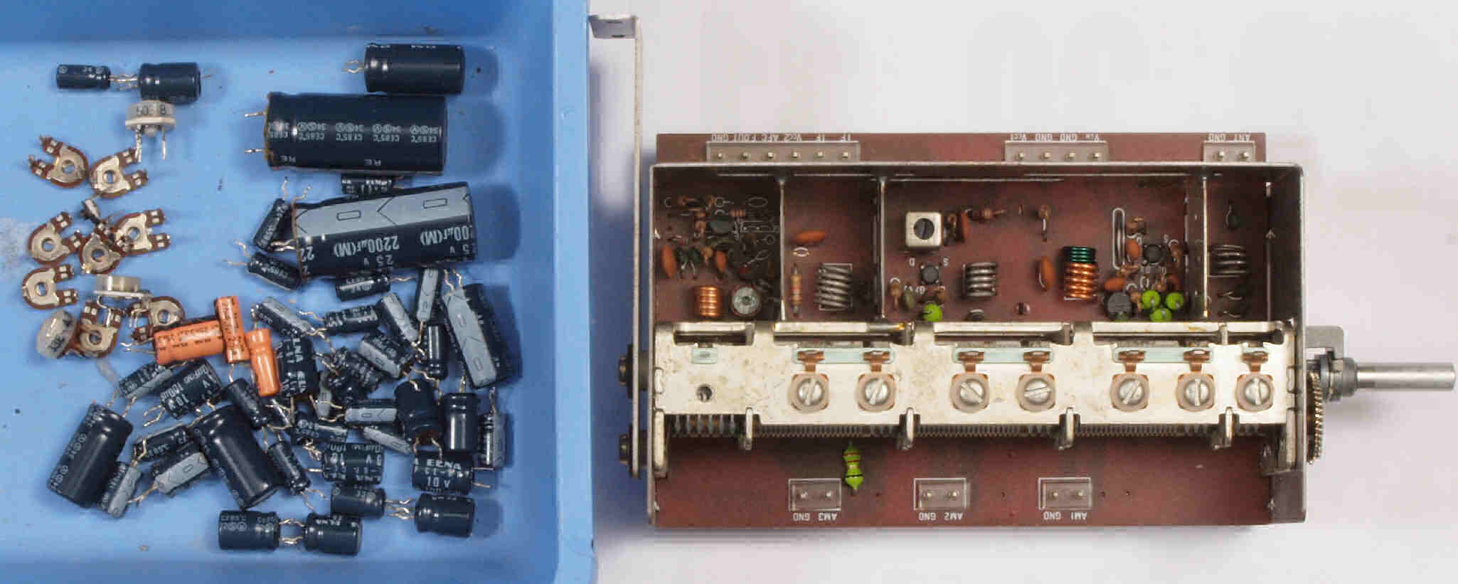 | C22. 修理後 RF−IF基板。 半固定VR2個、OP-AMP2個、電解コンデンサー8個交換。 | ||||||||||||||||||||||||||||||||||||||||||||||||||