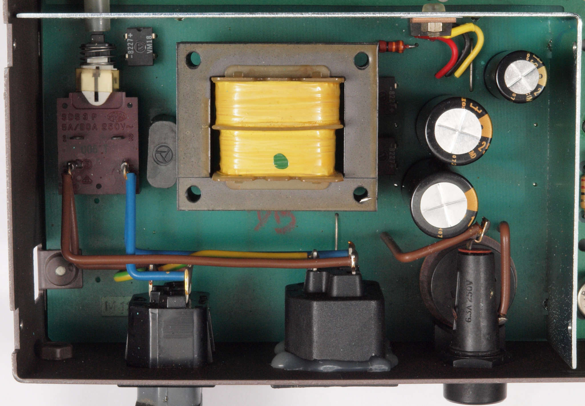 C112. 修理中 電源基板。 定電圧ICは電源シールド板に取り付ける。