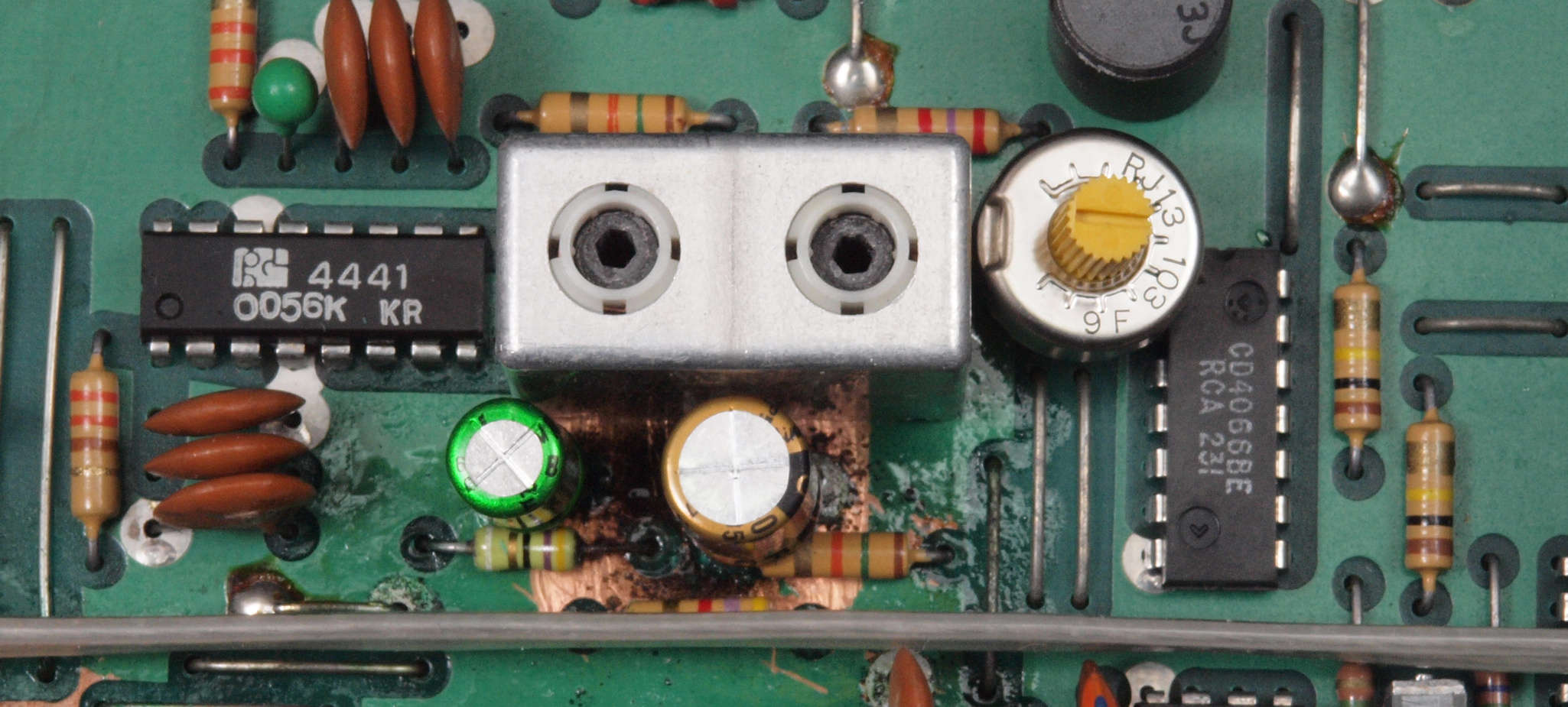 C2A. 修理後 AMP基板裏の電解コンデンサーの液漏れ。