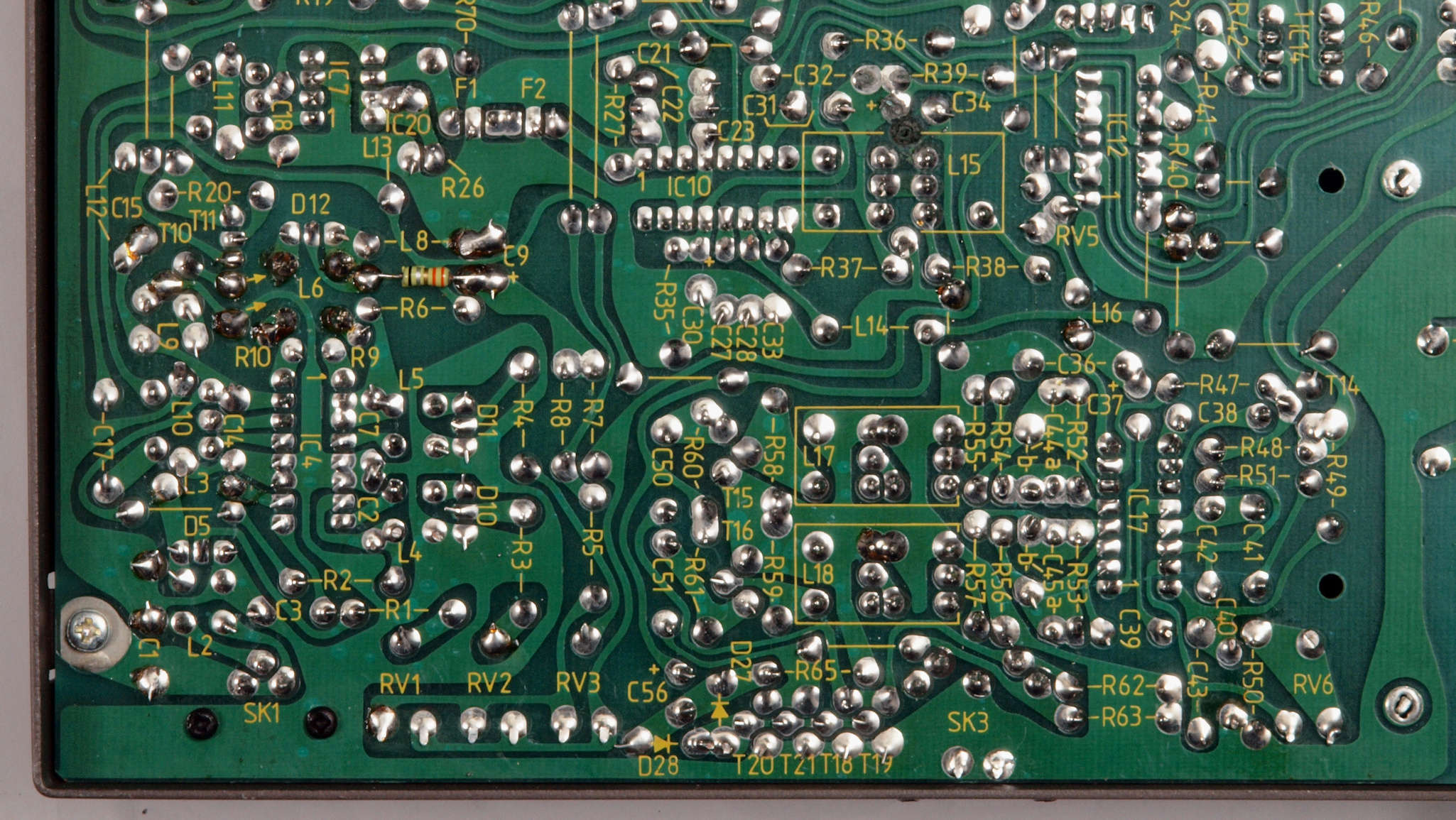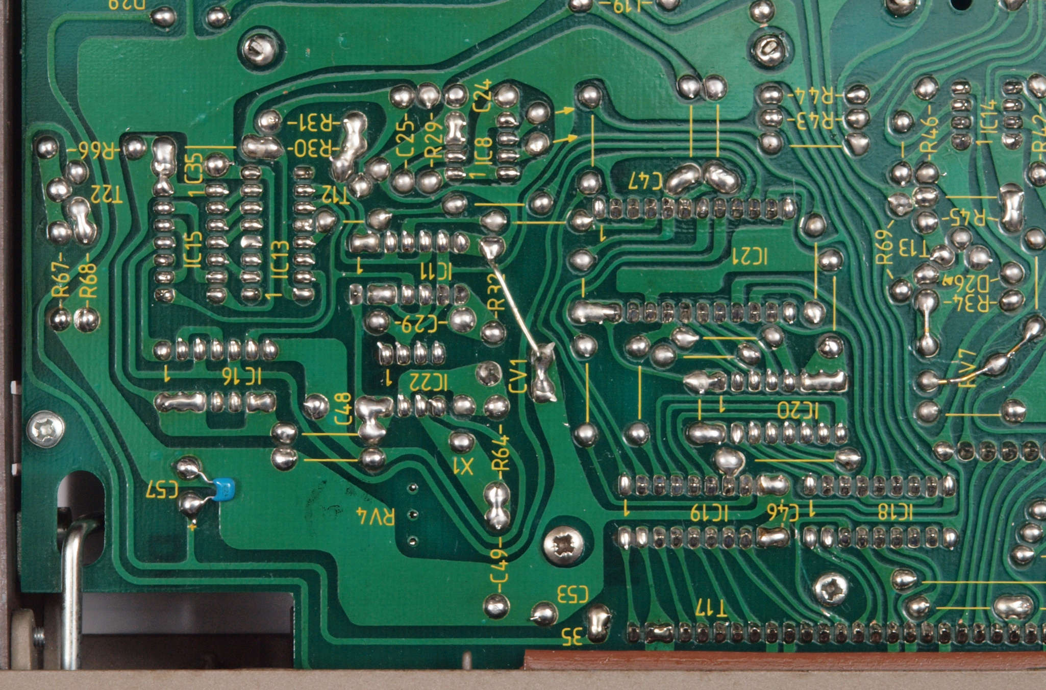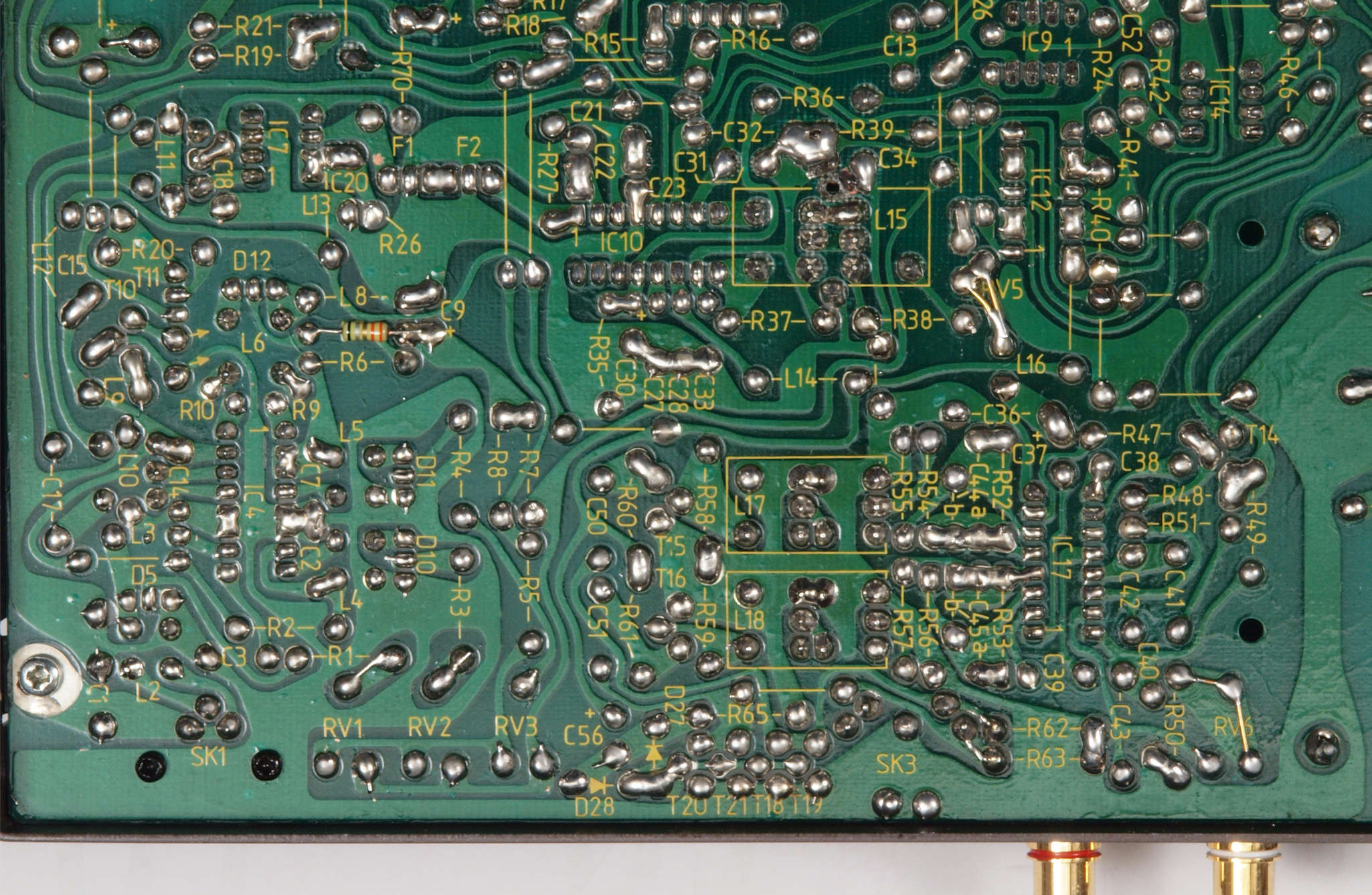 C24. 修理(半田補正)後 AMP基板裏。 半田を全部やり直す。