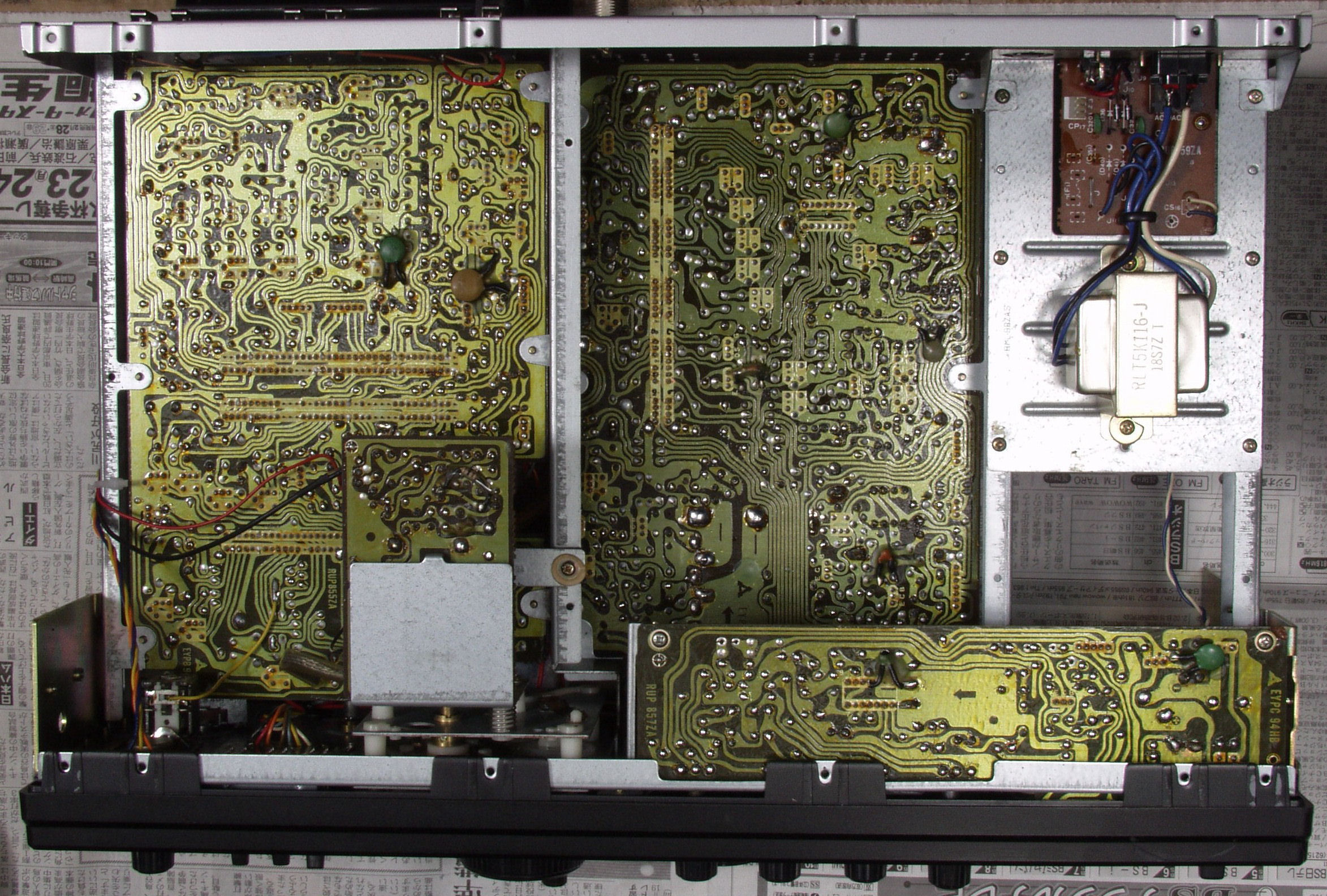 | C33. 修理後 RF基板 電解コンデンサー3個、TR(トランジスタ−)2個、FET(電界トランジスタ−)交換 |