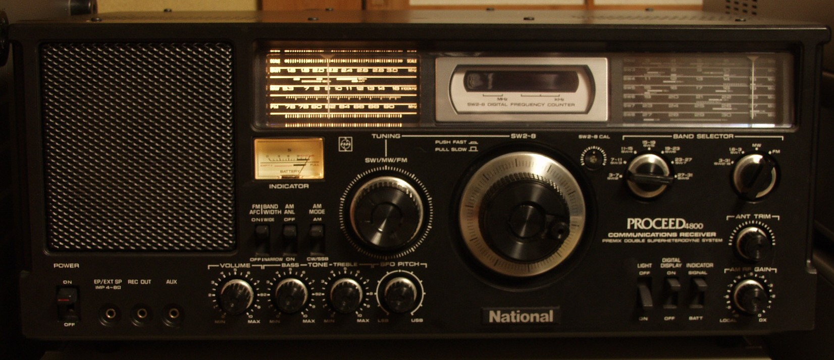 MW(AM),SW1,FM選択時にもダイヤル照明が点灯し、青色デジタルカウンターにて1KHz直読が可能です。