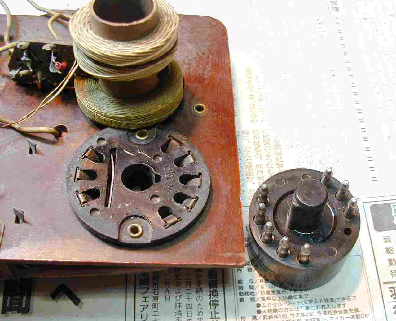 11.同調コイルと真空管ソケット、足の数からして複合管?