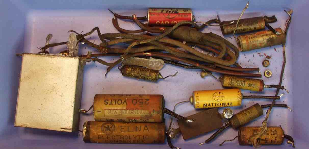 「ナショナル」「ELNA」「NATIONAL」「日本コンデンサ−」「大和電解」の名前が見える