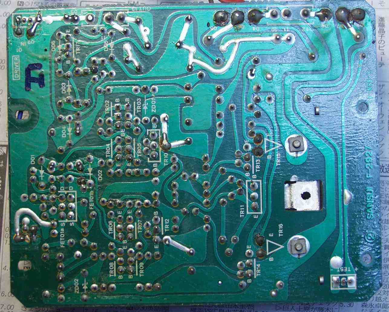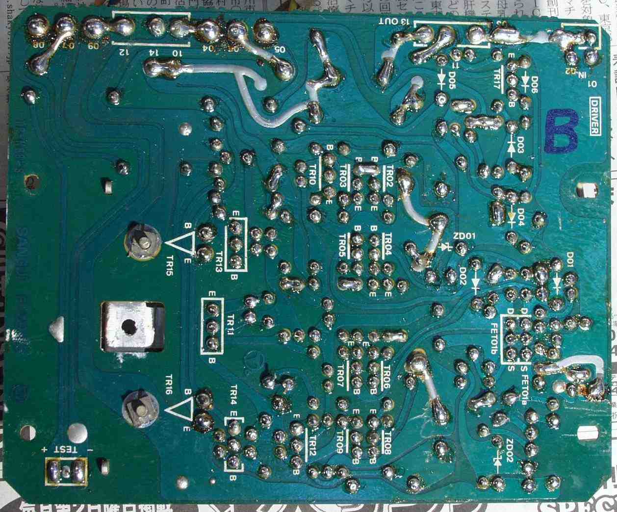 | C−2D. 修理(半田補正)後 コントロールAMP基盤裏 全ての半田をやり直す |