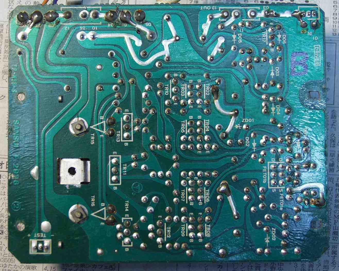 | C−3C. 修理前 電源整流+プロテクト基盤裏 |