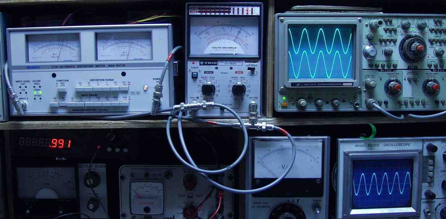 | E−2A. 出力/歪み率測定・調整 出力=25V=78W 歪み率0.07% at=1000HZ AUX端子入力 |