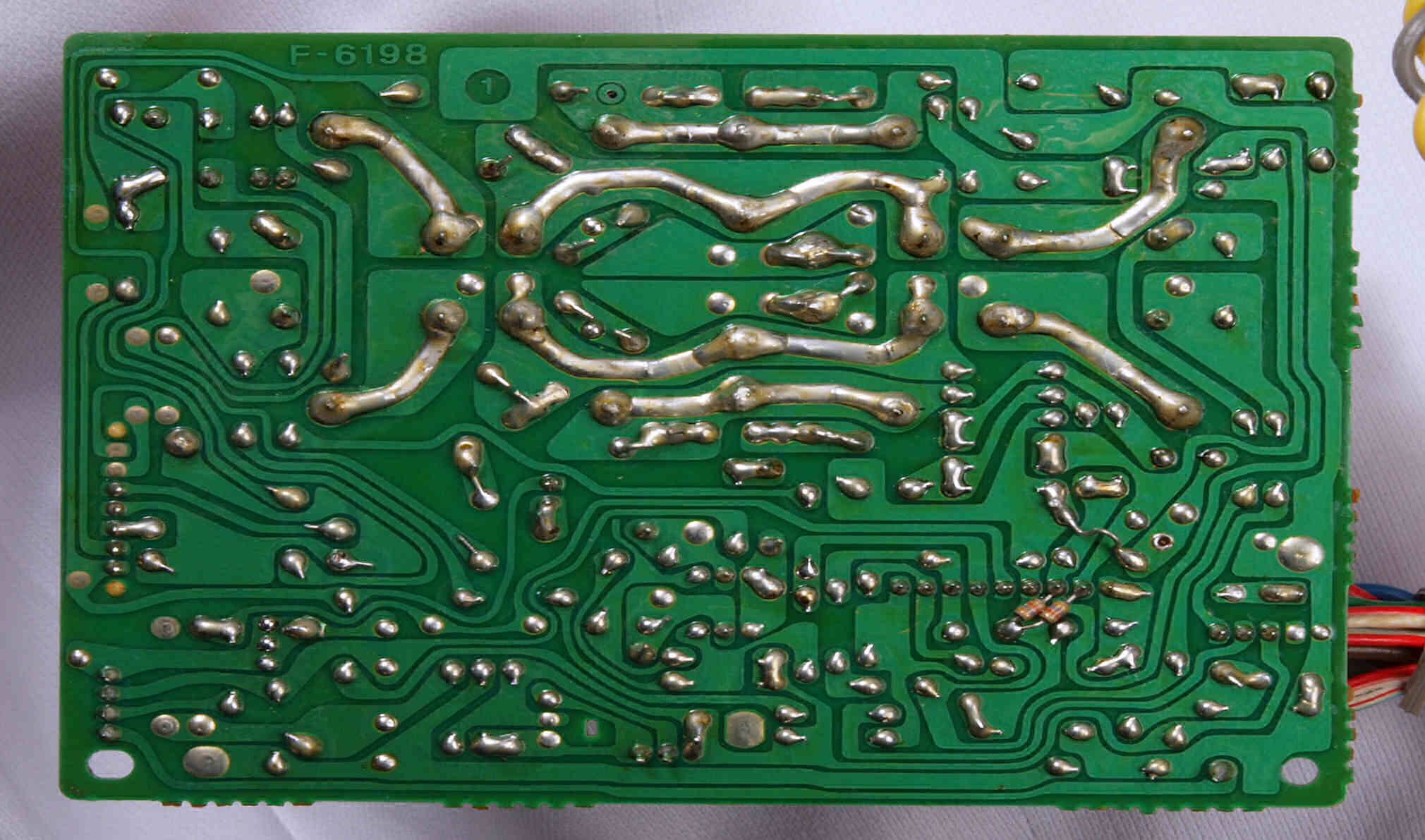 | C44. 修理(半田補正)後 定電圧基板裏、 セラミックコンデンサー4個追加、 全半田やり直し。 | ||||||||||||||||||||||||||||||||||||||||||||||||