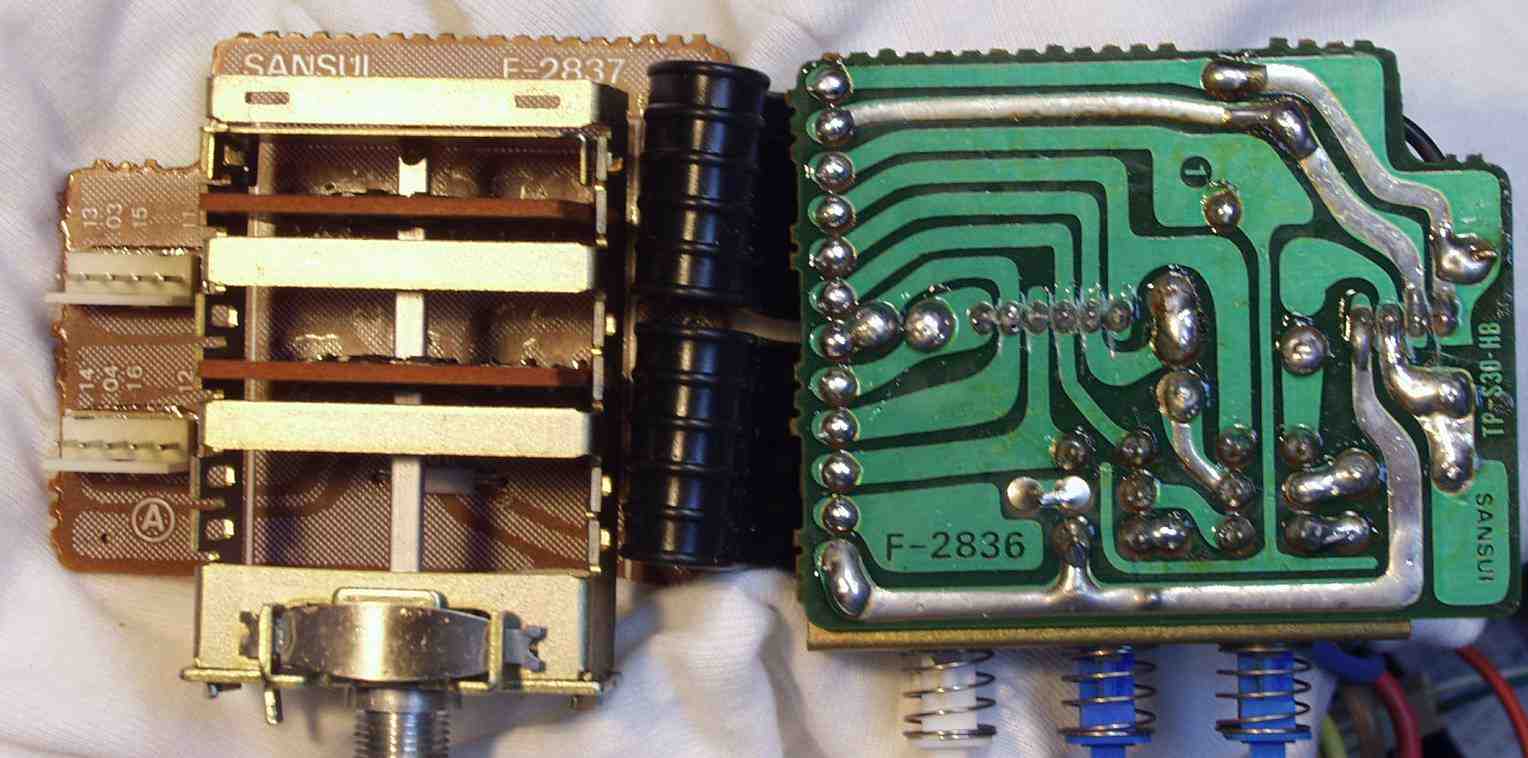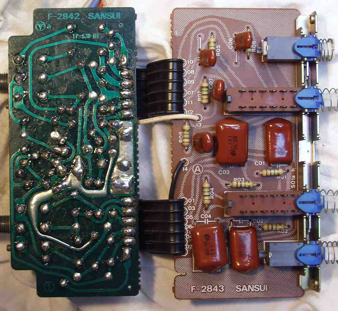 C−6B. 修理後 EQ基盤 初段FET(電界効果トランジスター)2個、半固定VR2個、電解コンデンサー20個交換