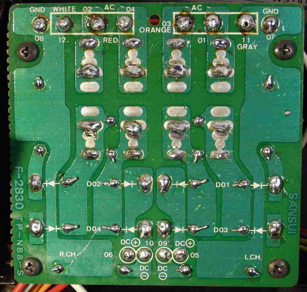 C−1D. 修理(半田補正)後 メイン・ドライブAMP基盤 裏