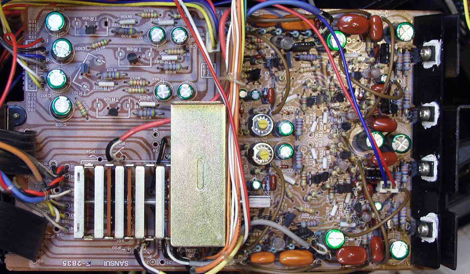 C−1B. 修理後 メイン・ドライブAMP基盤 初段FET(電界効果トランジスター)2個、半固定VR4個、電解コンデンサー20個交換