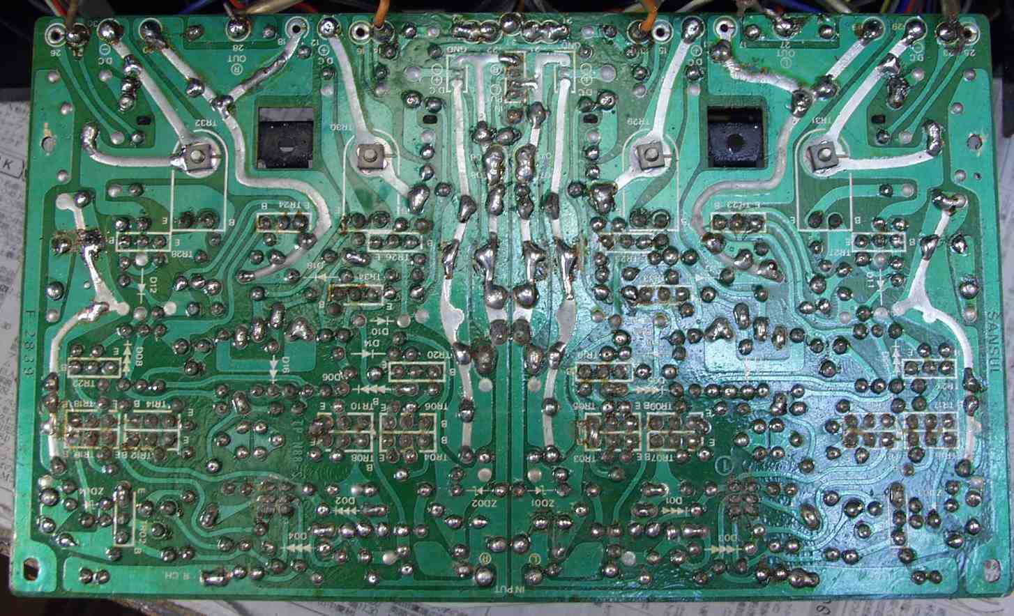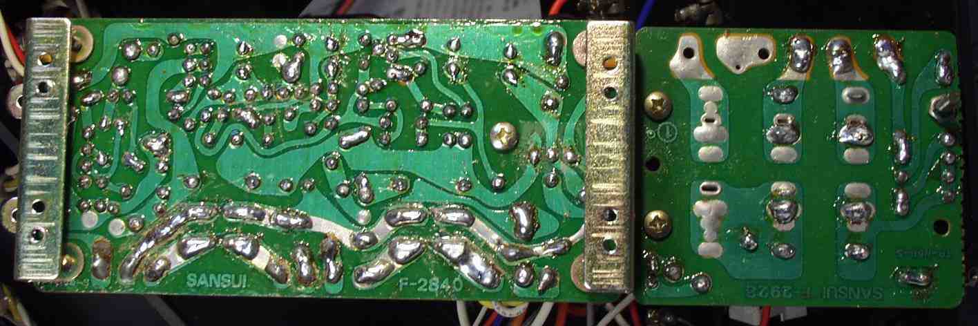 C−2E. 修理前 コントロールAMP基盤 接続端子の半田のり=少ない!
