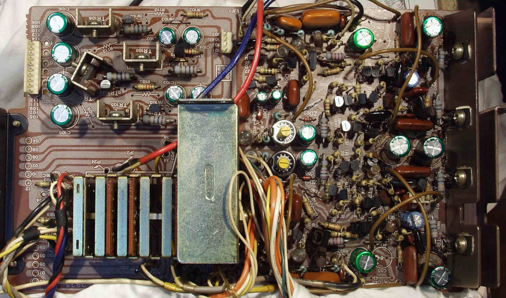 A−1. 修理前 上から 707より、多くの電解コンデンサーが使われている、容量も大きい