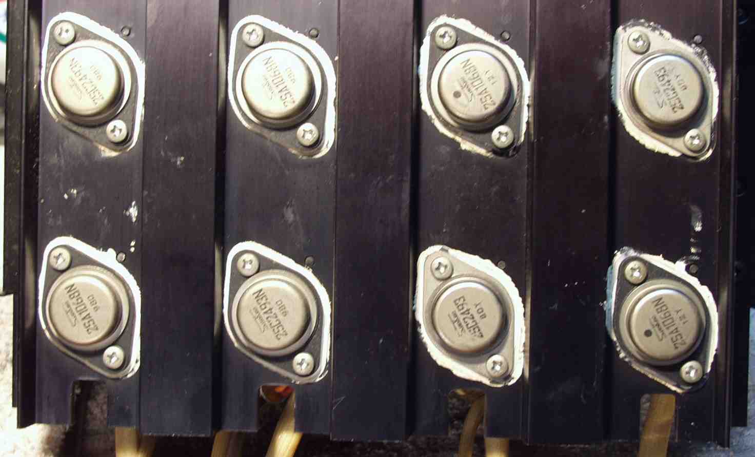 A−3. 修理中 交換されている終段TR(トランジスター) 3列上、4列下