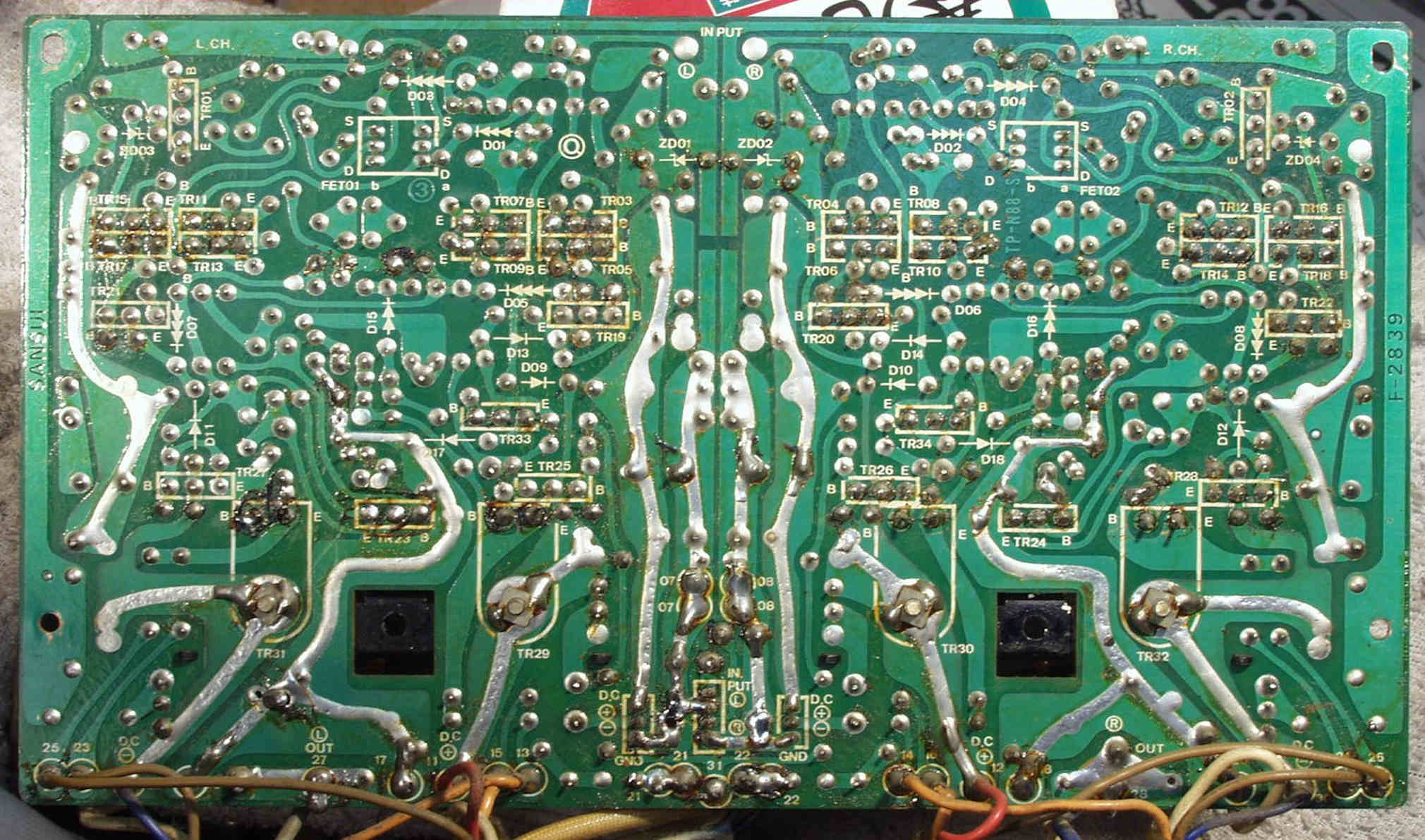 C−2C. 修理前 FLAT−AMP基板裏