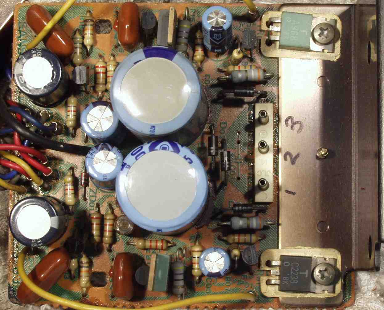 C−3B. 修理後 電源整流基板 電解コンデンサー12個交換