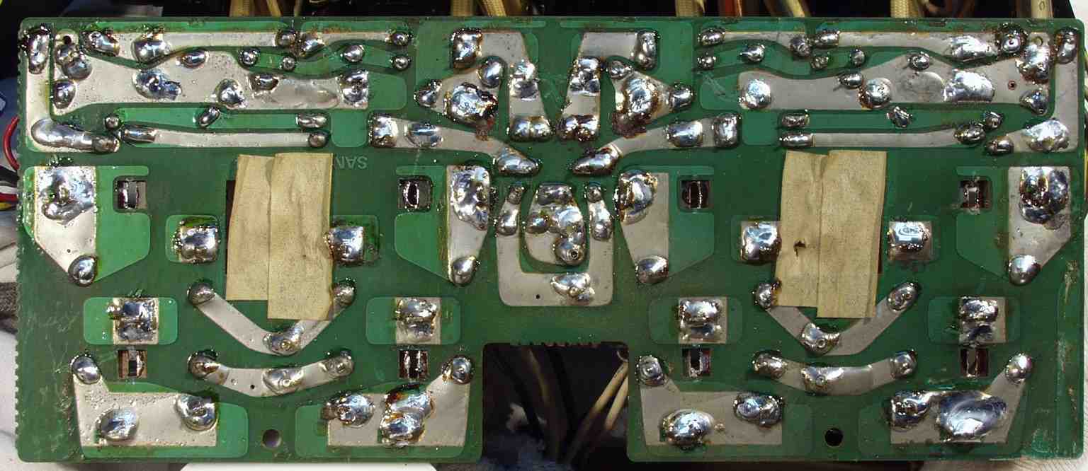 C−1D. 修理(半田補正)後 メイン・ドライブAMP基板裏 全ての半田をやり直す